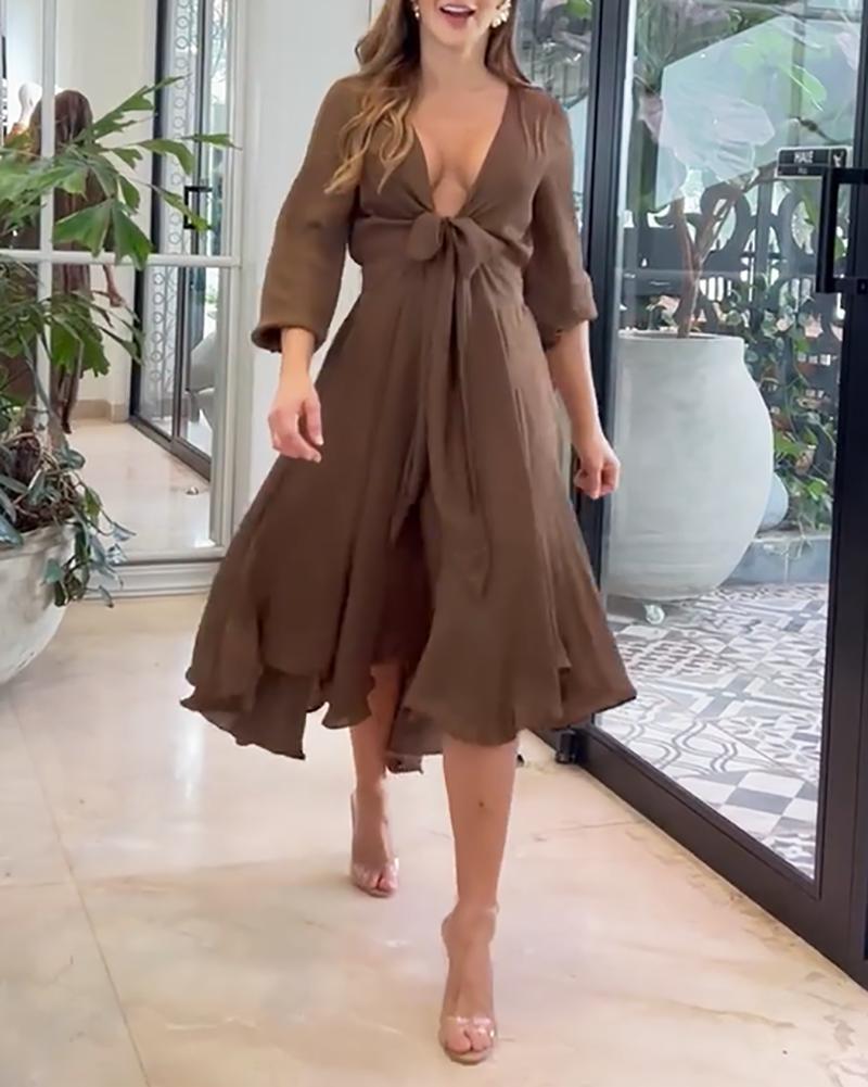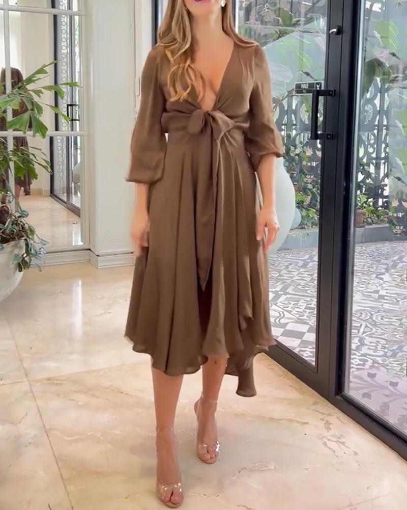 Product Name A-line dress with deep V neck and high waist