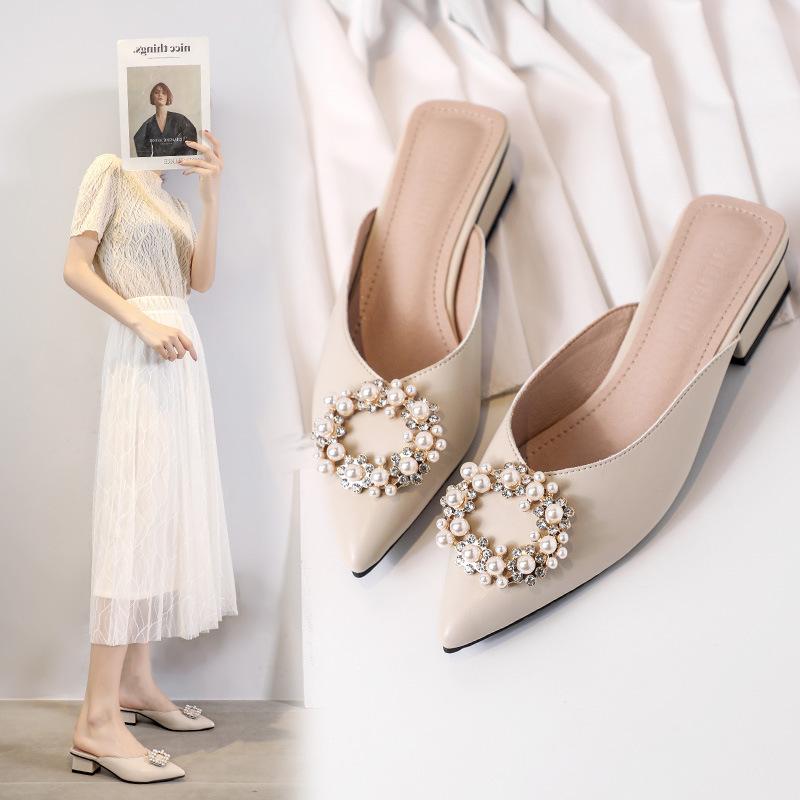 Bag pointed thick heel high heel Muller sandals and slippers