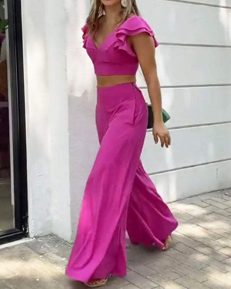 Butterfly sleeve solid color two-piece set