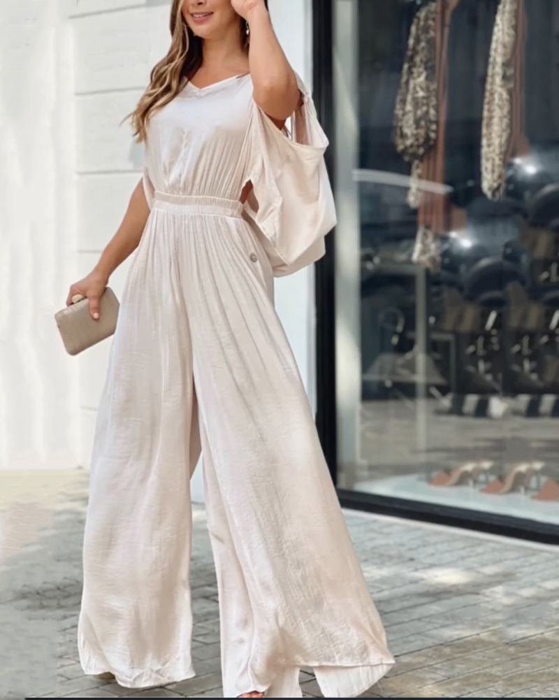 Casual open-back wide-leg jumpsuit