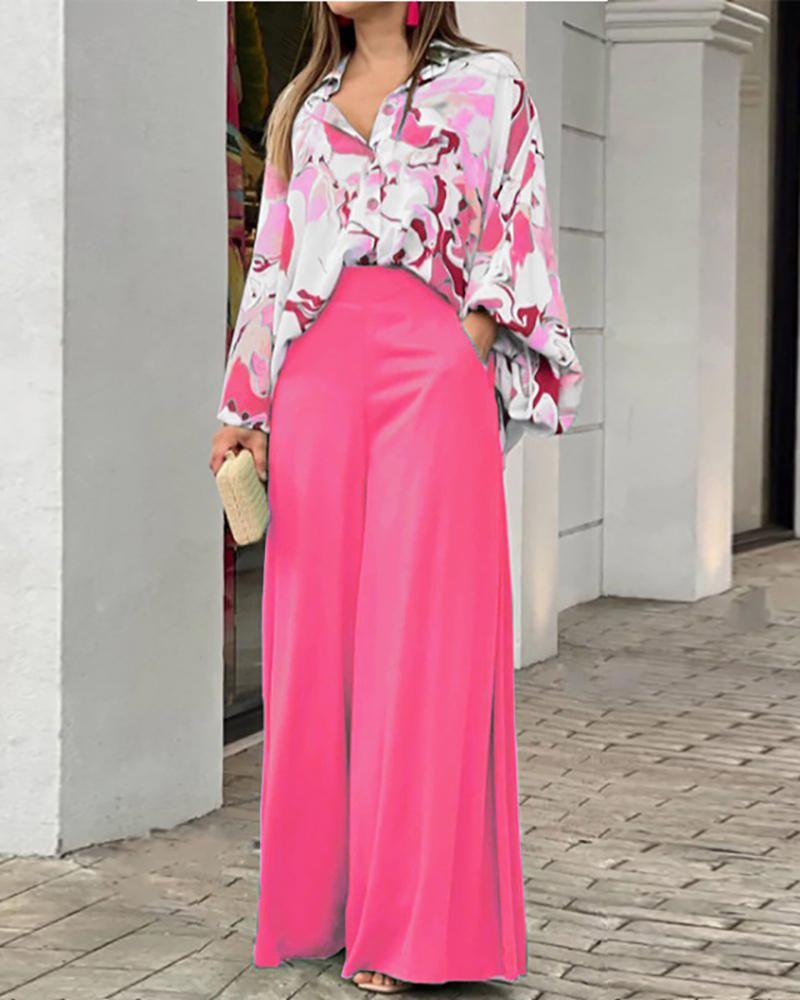 Casual Print Shirt & Wide Leg Pants Two-Piece Set