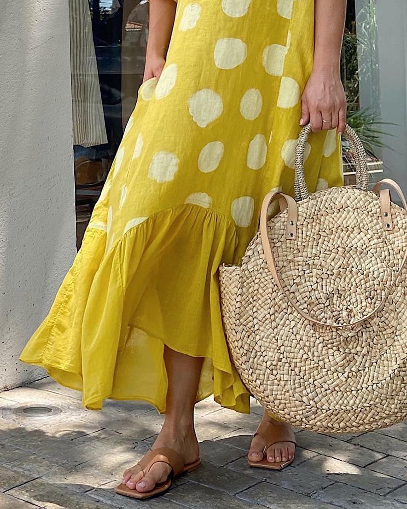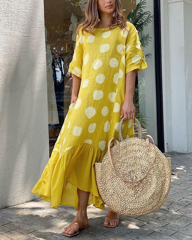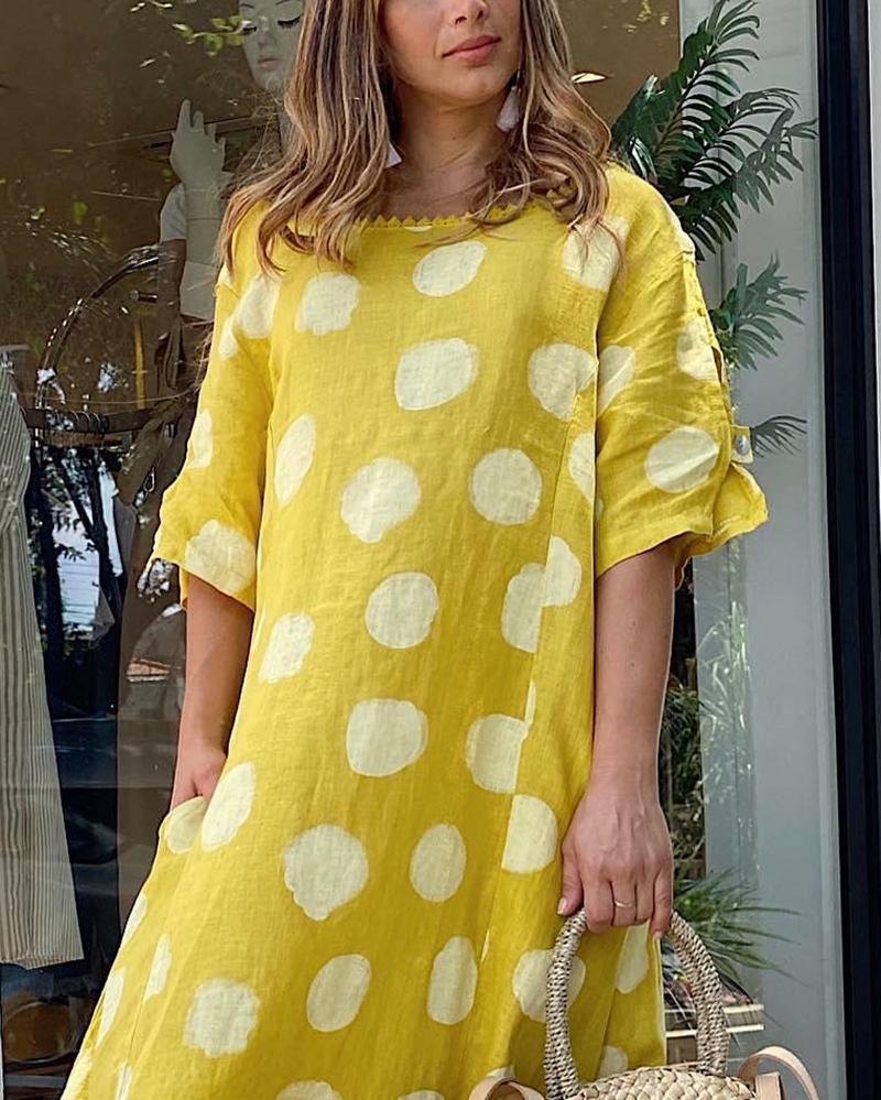 Casual short sleeve polka dot print dress