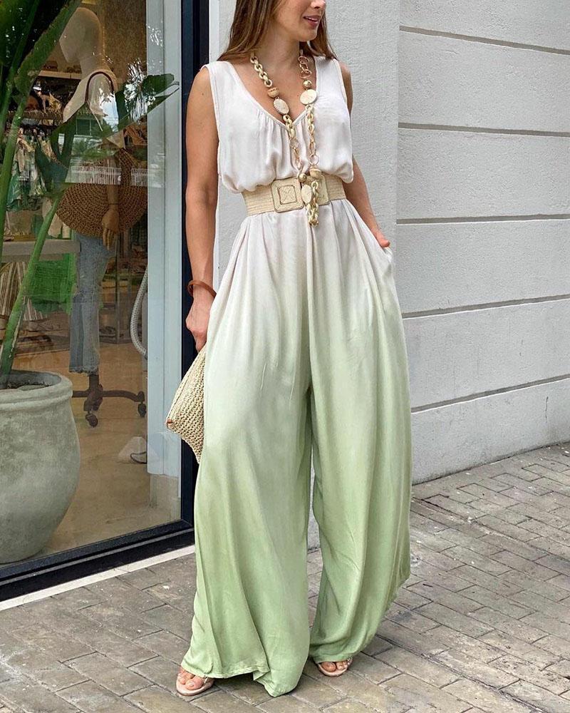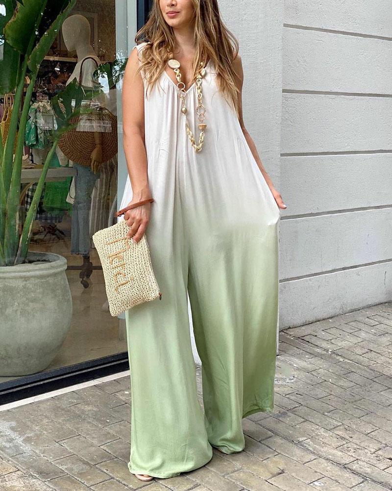 Casual V-Neck Sleeveless Gradient Jumpsuit