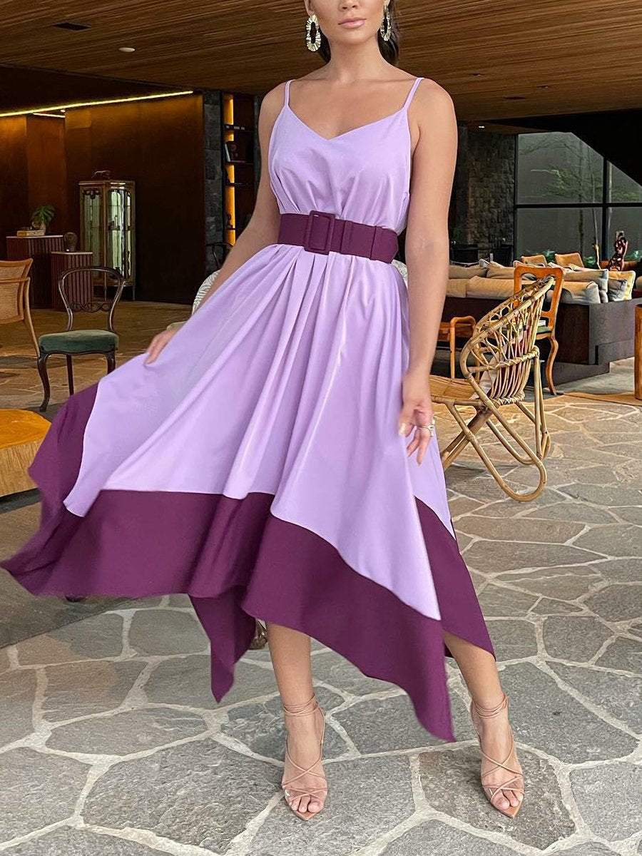 Fashion Sling Side Slit Tight-fitting Multi-color Mid-length Gown