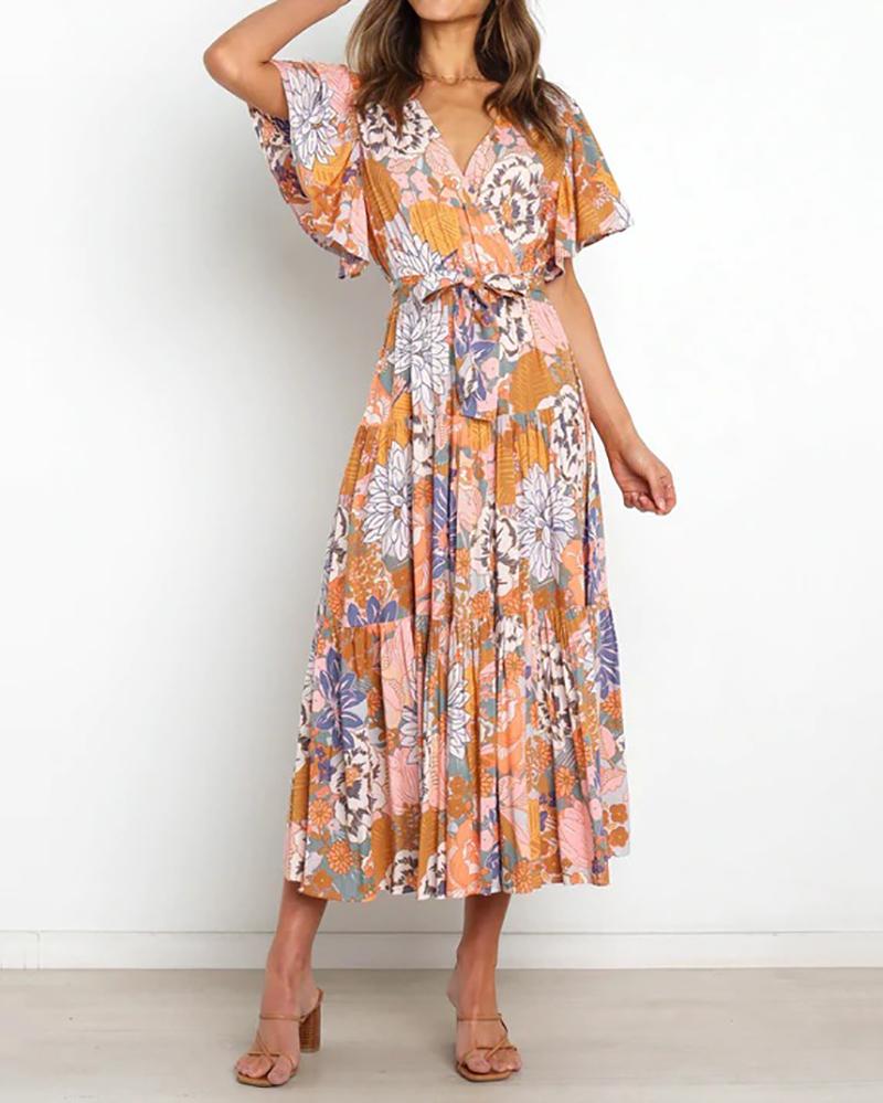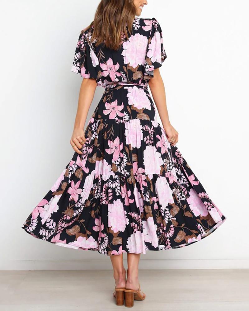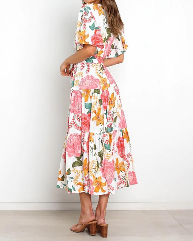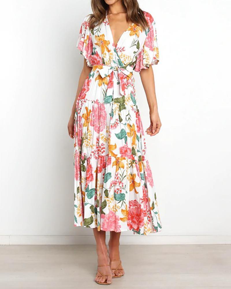 Commuter v-neck short-sleeved printed dress