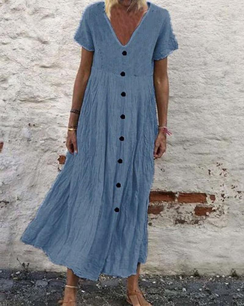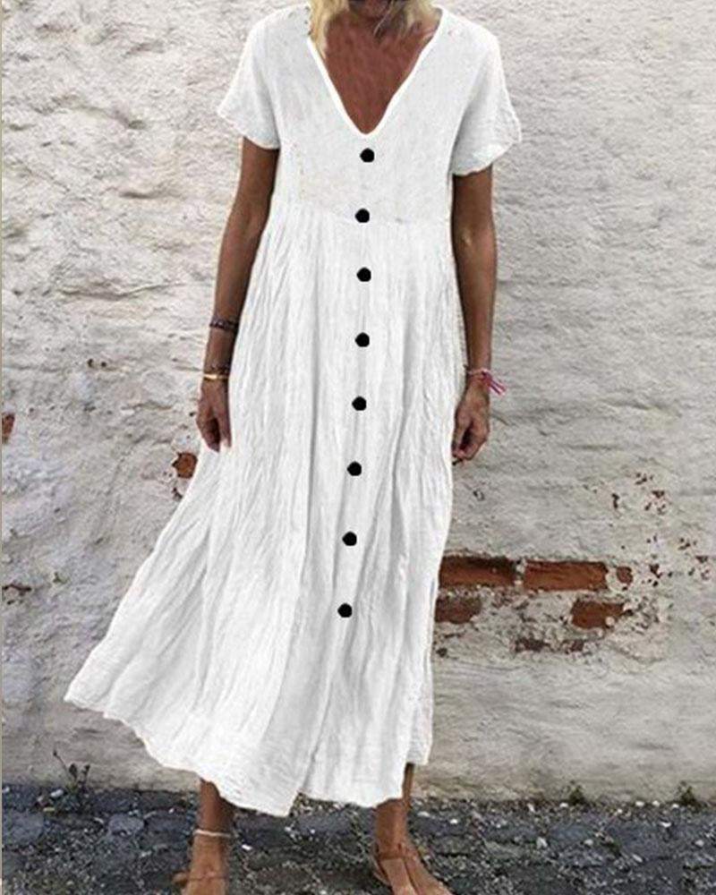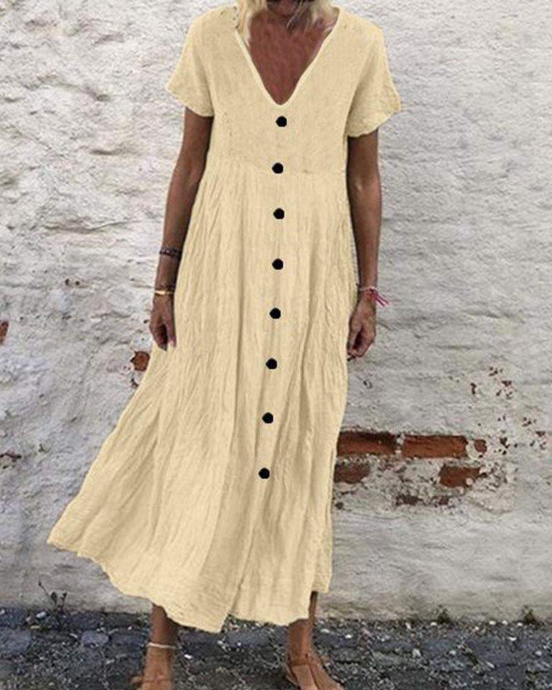 Simple Loosen Solid Cap Sleeve Knee Dress