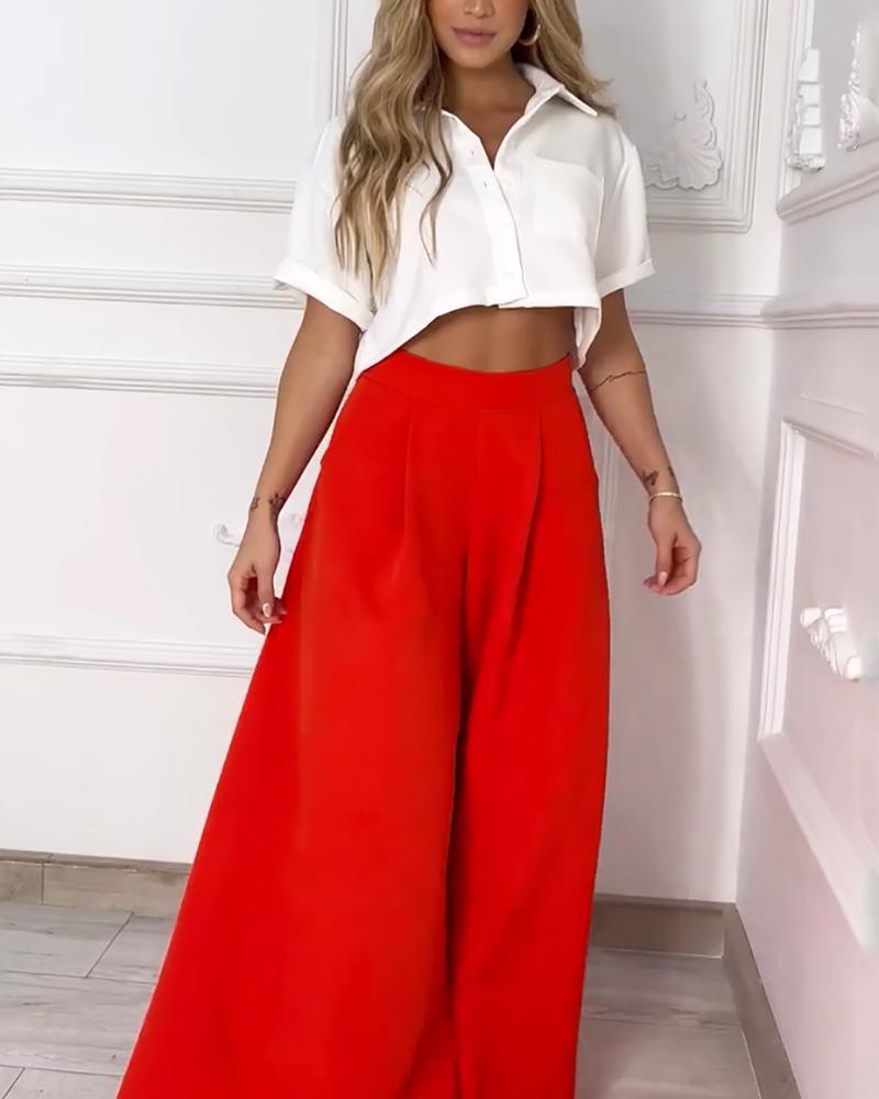 Cropped Top & Casual Wide Leg Pants Two Piece Set