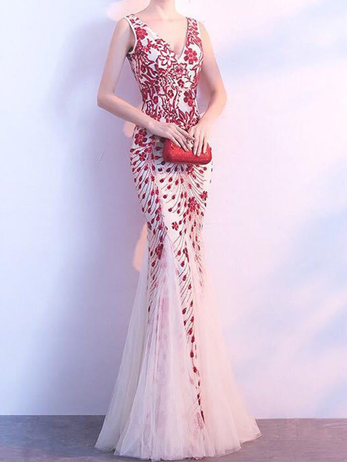 Fashion Sling Side Slit Tight-fitting Multi-color Mid-length Gown