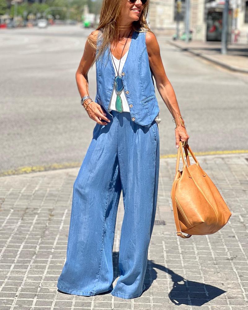 Denim Vest Slacks Suit
