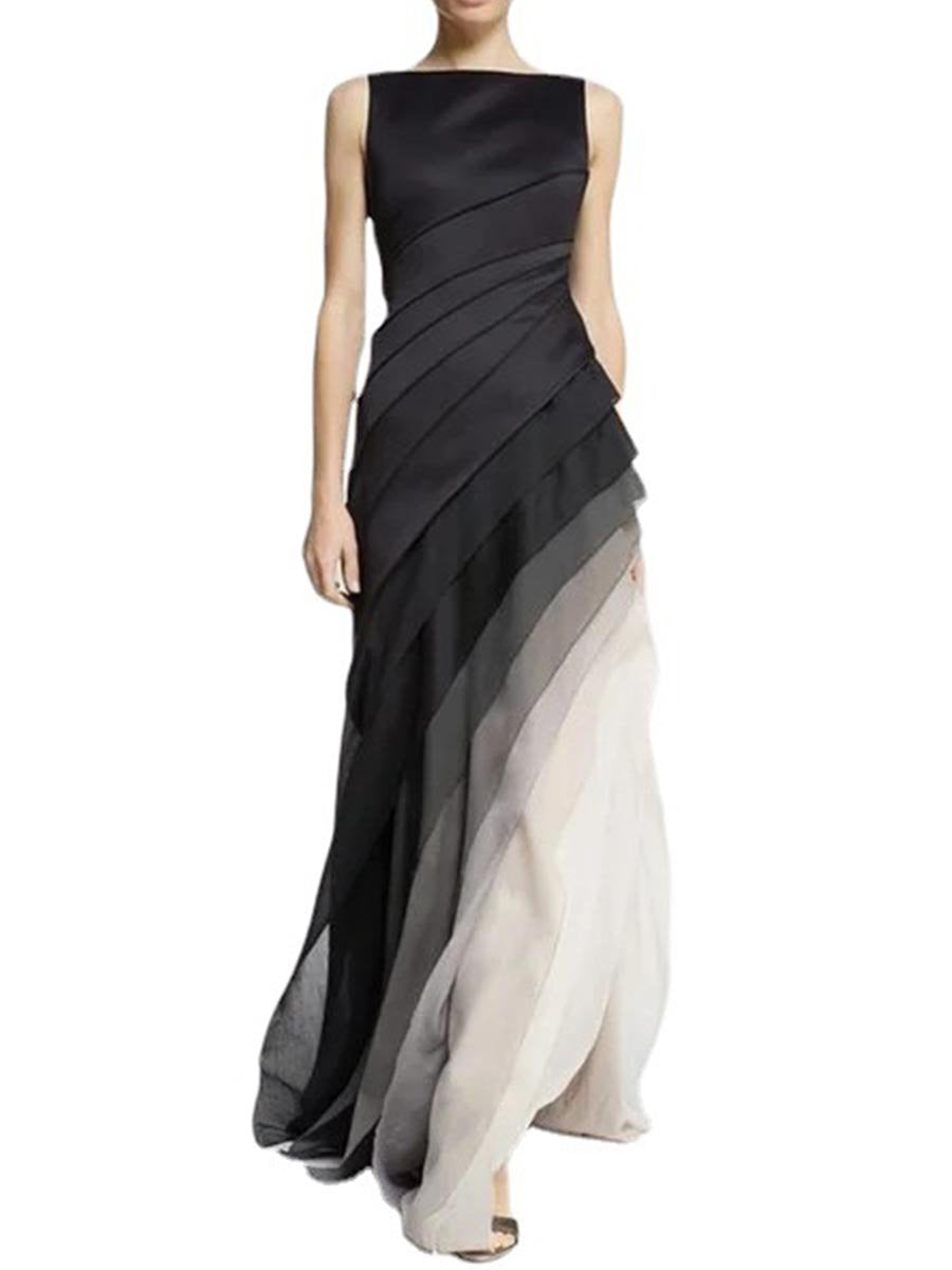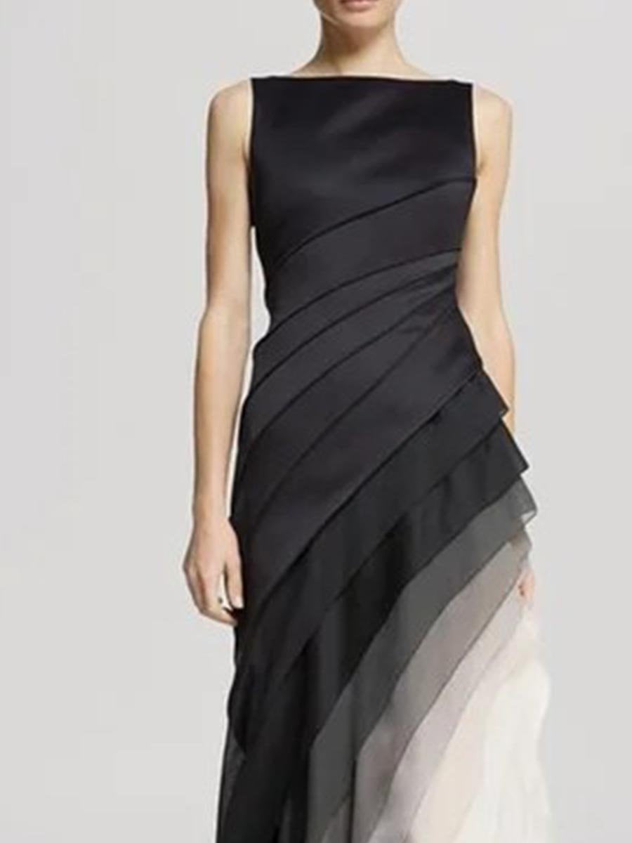 Solid Color Mesh Sleeveless Irregular Loose Dress