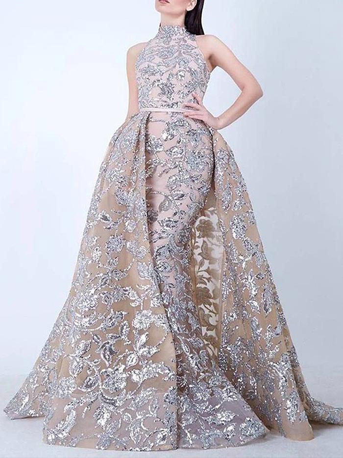 Round Neck with Cover-Up Maxi Dress Evening Dress