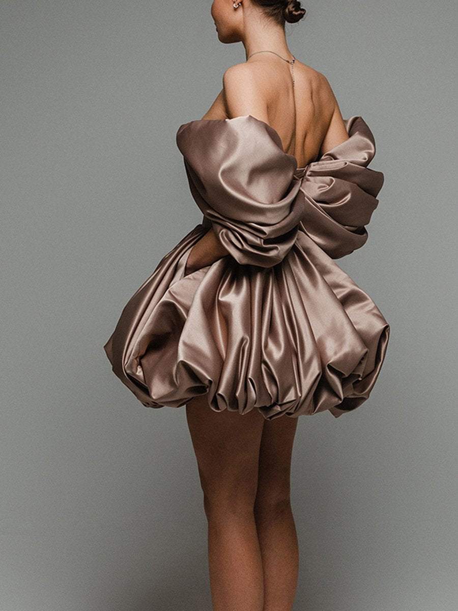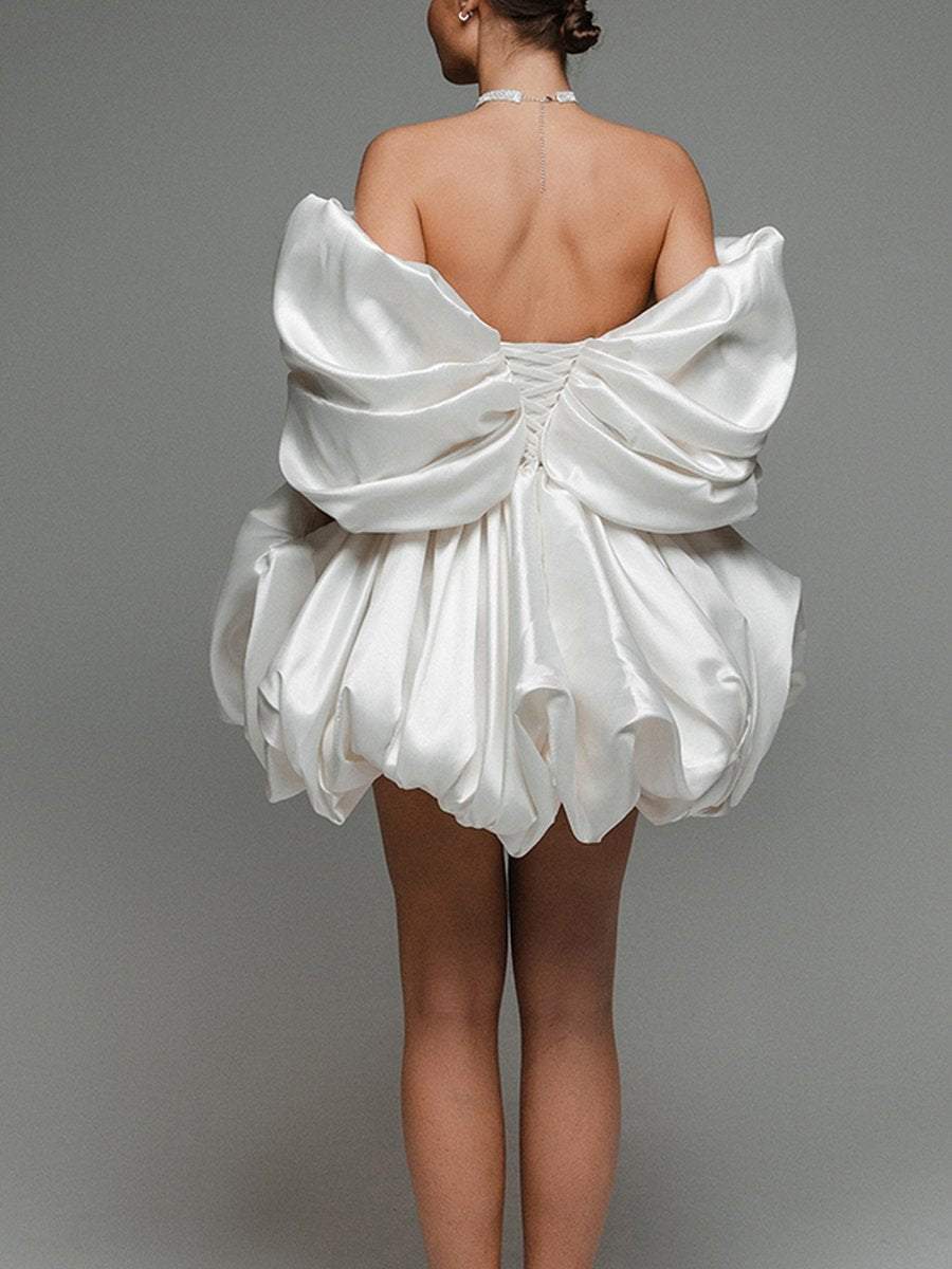 Round Neck Pleated Flare Sleeve Short Party Dress