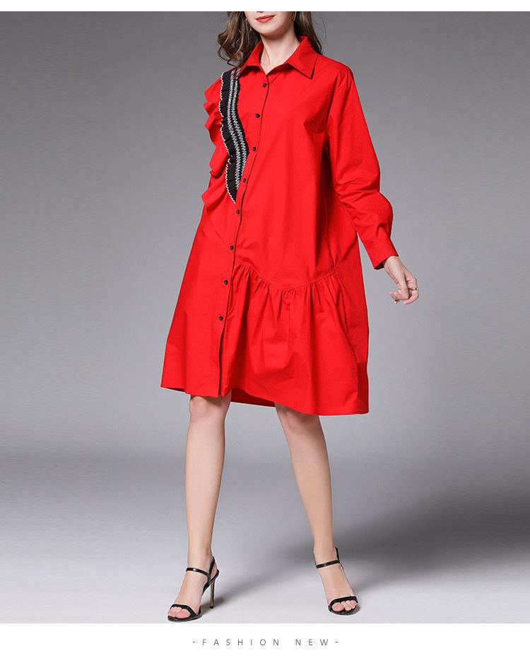Ladies' new and fashionable lace midi shirt dress