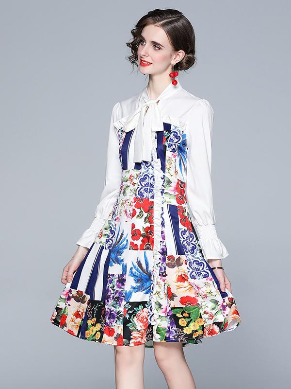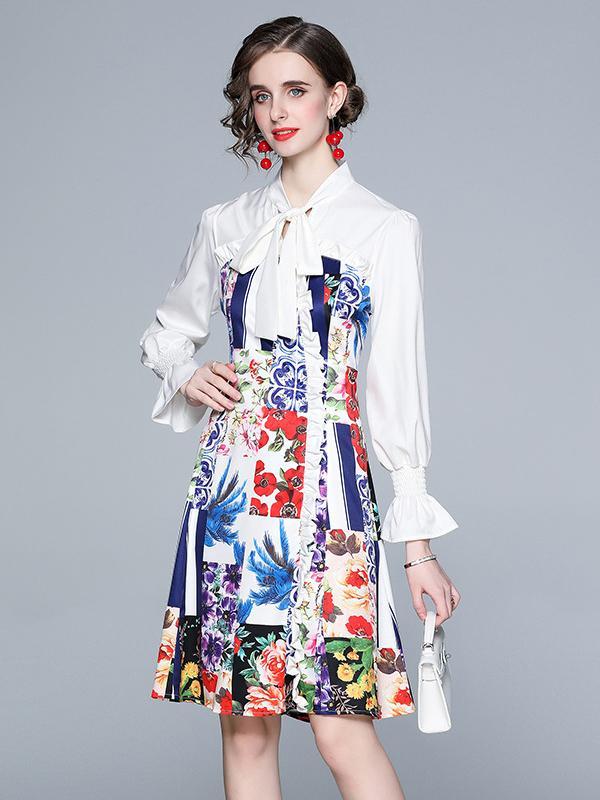 White V-neck Long-sleeved Simple Dress In The Long Section