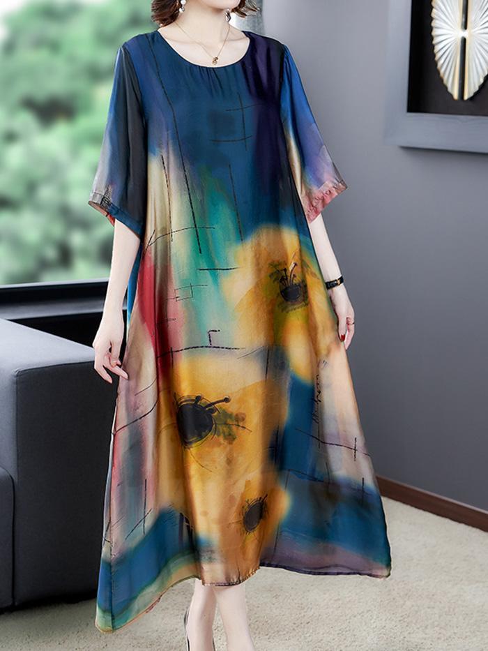 Simple Loosen Solid Cap Sleeve Knee Dress