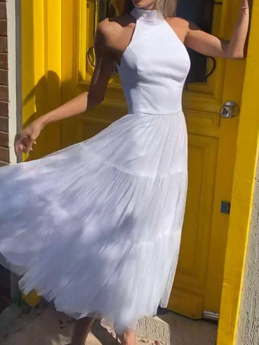 Solid Color Mesh Sleeveless Irregular Loose Dress