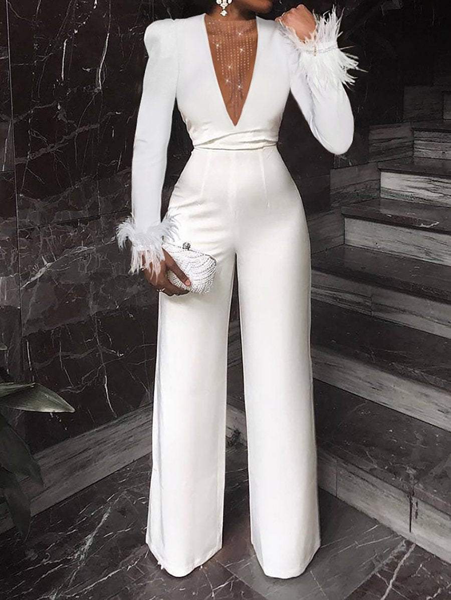 Elegant V-Neck Long Sleeve High Waist Jumpsuit