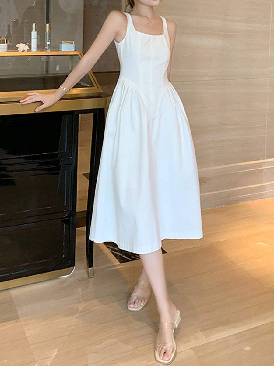 Elegant White A-Line Midi Dress