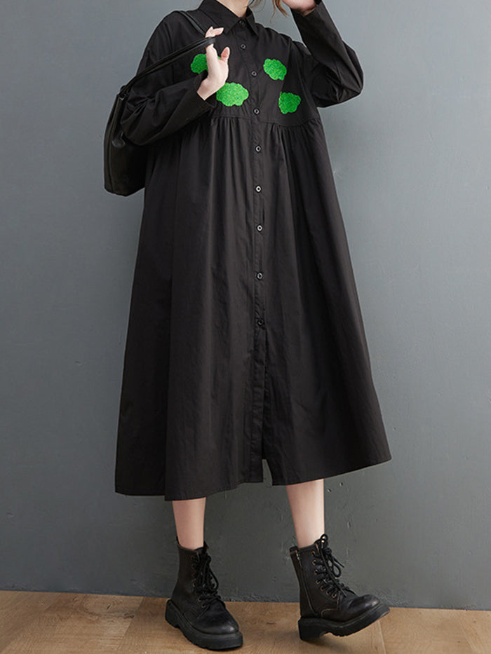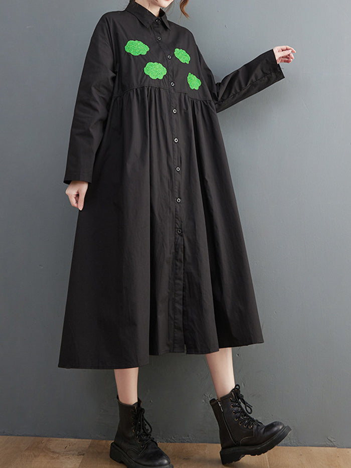 White V-neck Long-sleeved Simple Dress In The Long Section