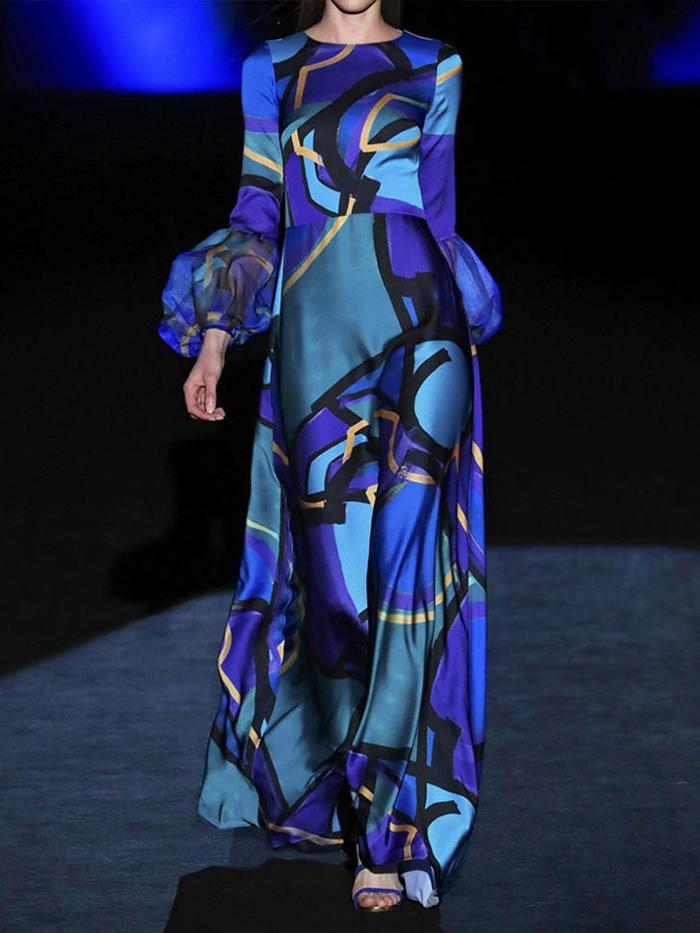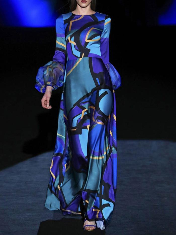 Fabric name boutique: four-way stretch Style: fashion Pattern: Printing Process: Printing/Dyeing Combination form: single piece Skirt length: long skirt Skirt type: pencil skirt Collar type: round neck Sleeve type: conventional sleeve Sleeve length: long sleeve Waist type: middle waist Clothing placket: hedging Popular elements: lace, printing Main fabric composition: polyester fiber (polyester) The content of the main fabric ingredient: 71%-80% Main fabric composition 2Poly: ester fiber (polyester) The content of main fabric ingredient 2: 10% or less Lining composition: polyester fiber (polyester) Lining ingredient content: 71%-80% color: blue Size: S, M, L, XL, XXL, XXXL