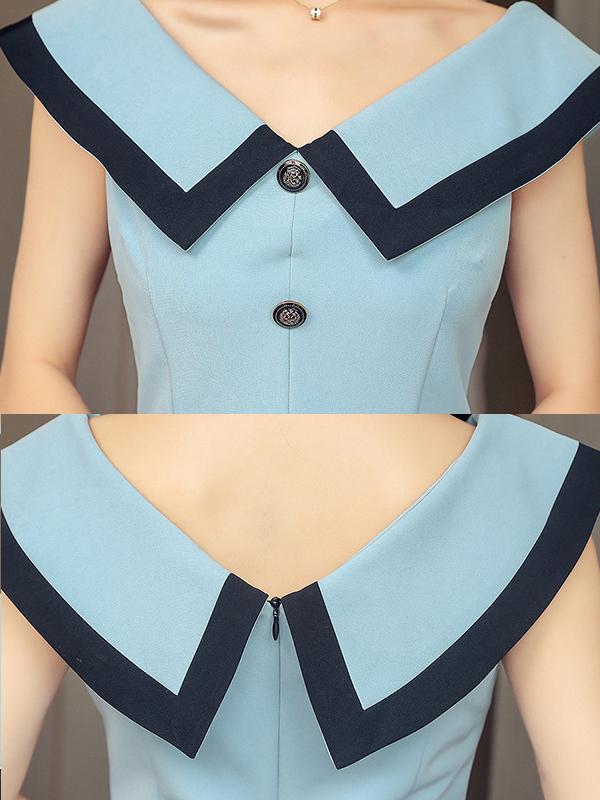 Elegant SATIN Wrap Chest Sleeveless Mid Length Evening Dress