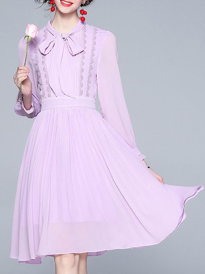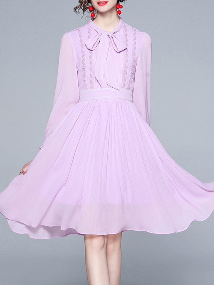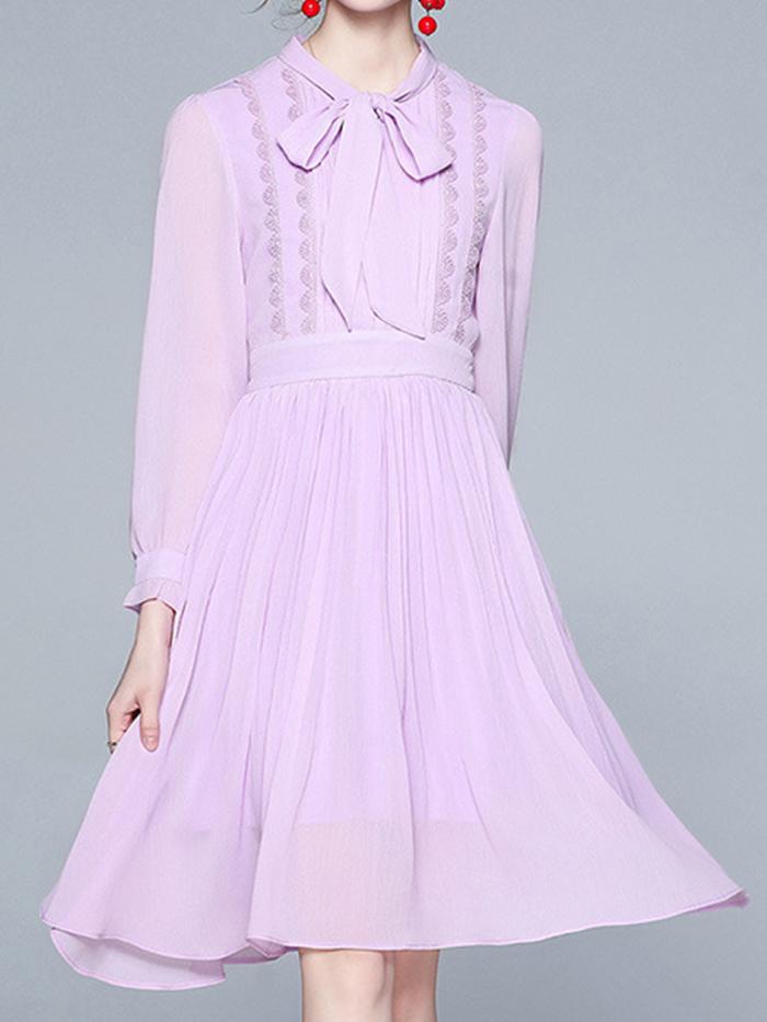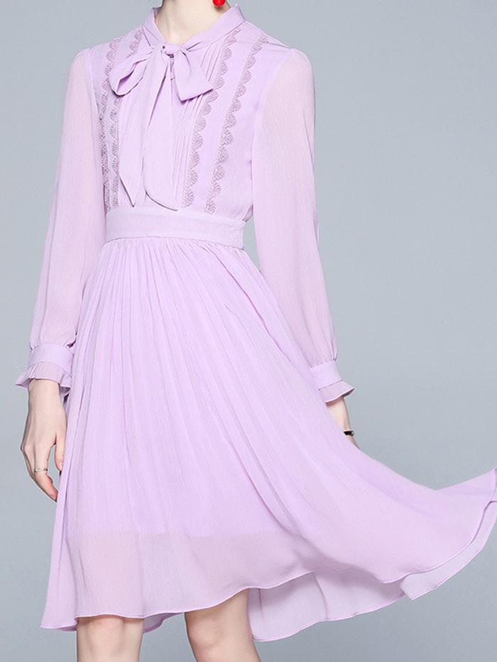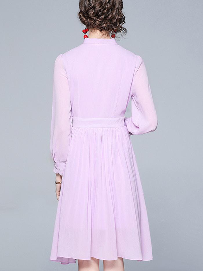 White V-neck Long-sleeved Simple Dress In The Long Section