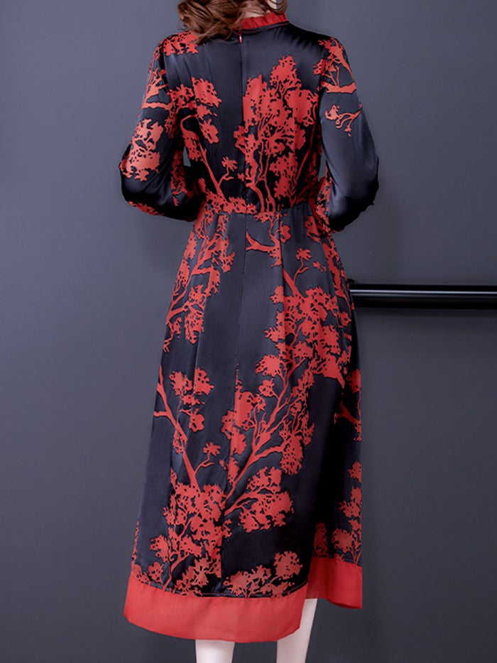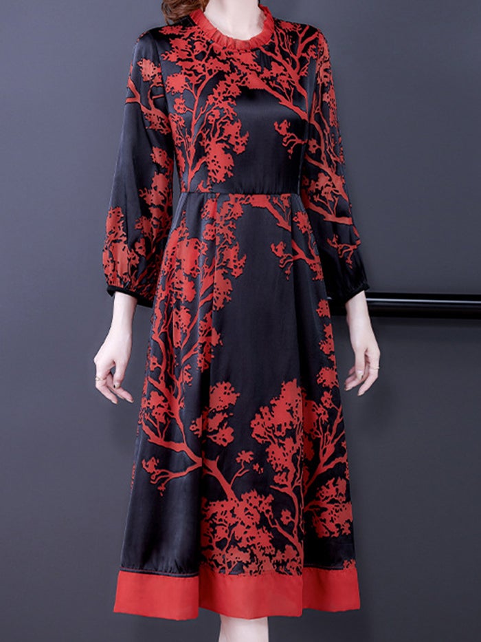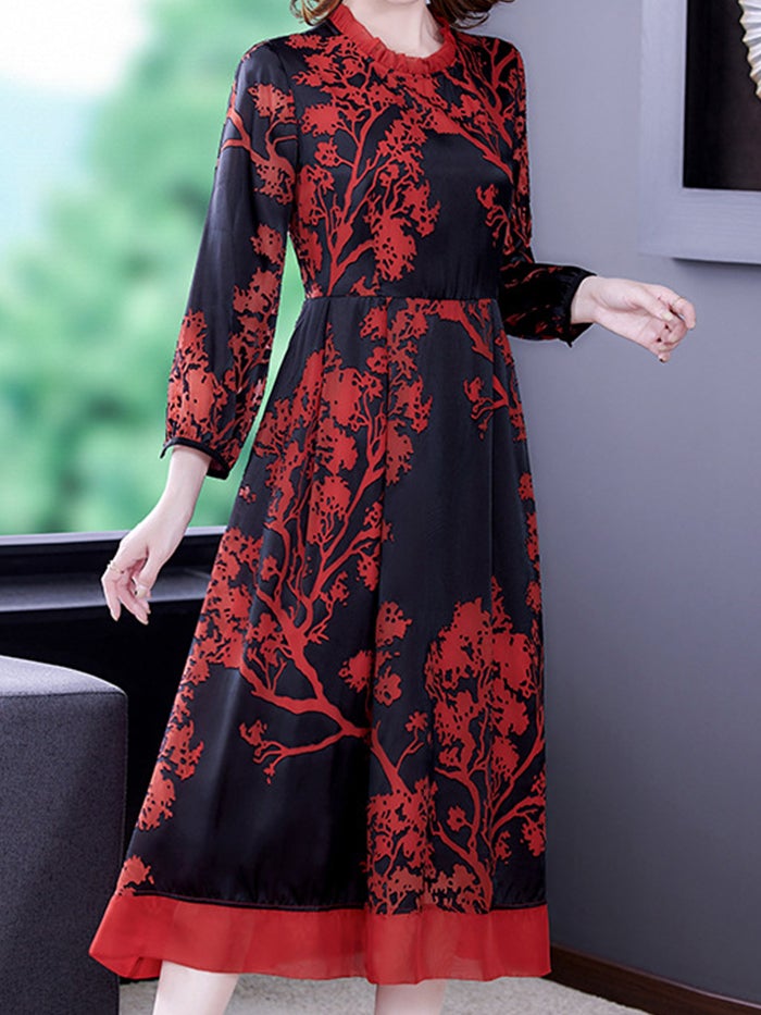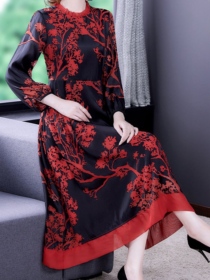 White V-neck Long-sleeved Simple Dress In The Long Section