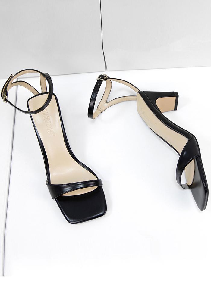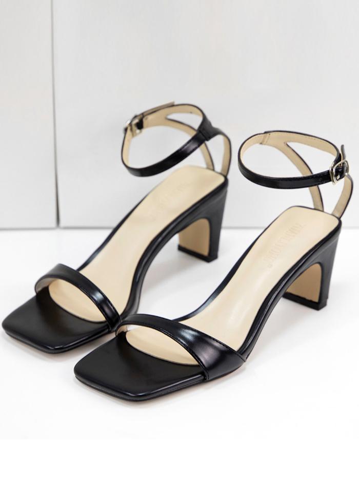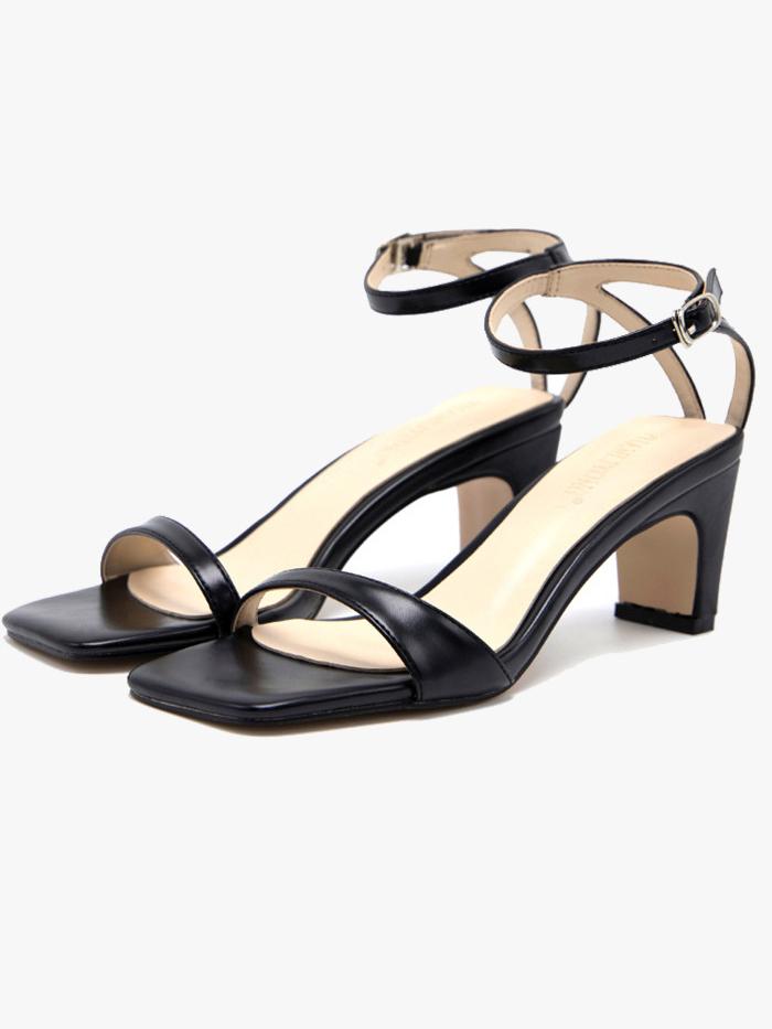 Fashion open-toe one-word sandals thick heel square toe comfortable sandals