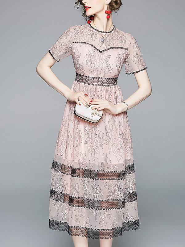 Round Neck Pleated Flare Sleeve Short Party Dress