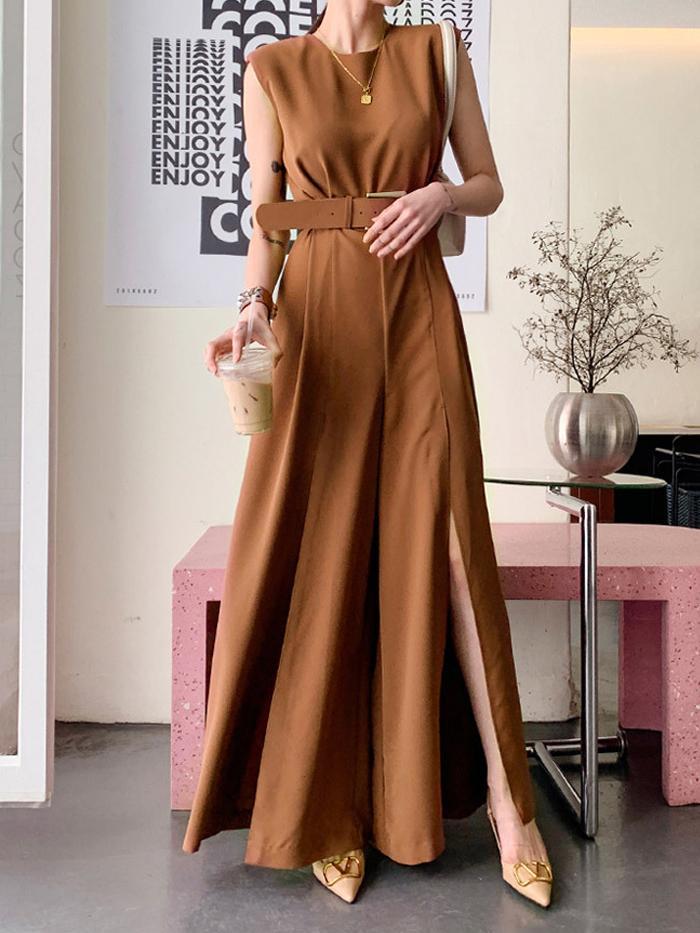 Solid Color Mesh Sleeveless Irregular Loose Dress