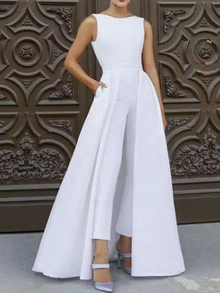 Fashion Solid Color Round Neck Jumpsuit