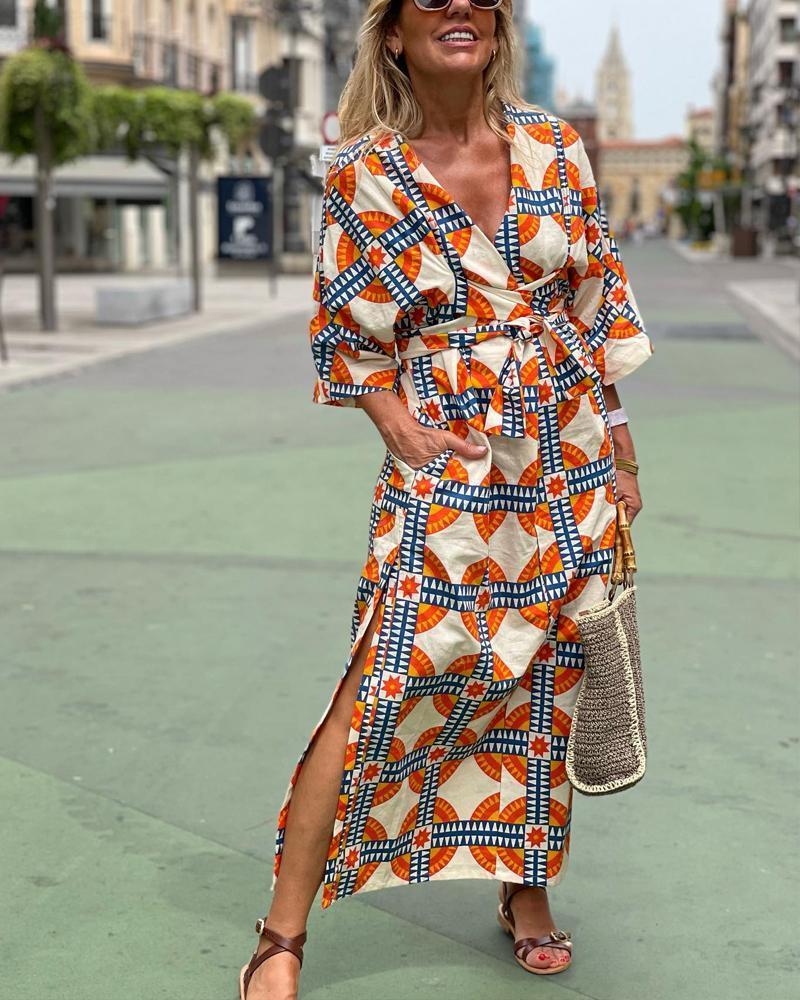 Product Name Geometric Pattern Belt Dress