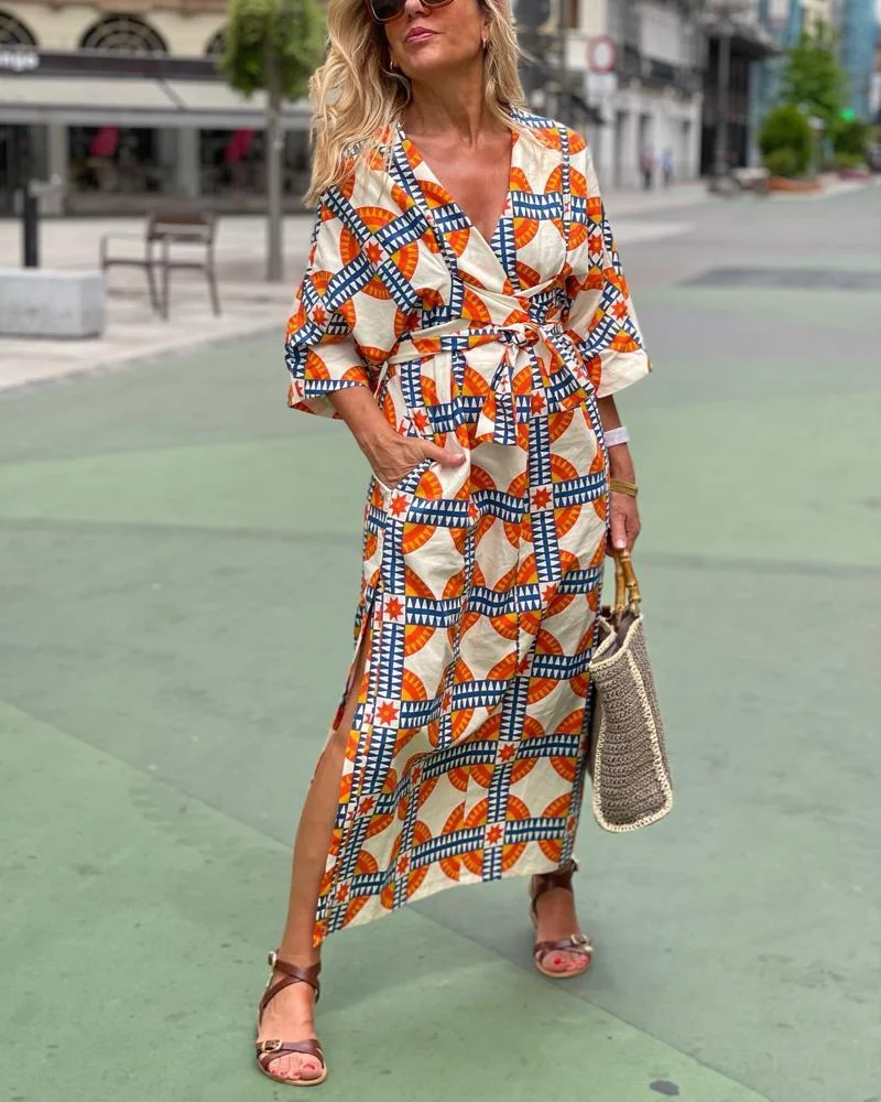 Product Name Geometric Pattern Belt Dress