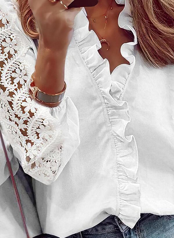 White V-neck Long-sleeved Simple Dress In The Long Section