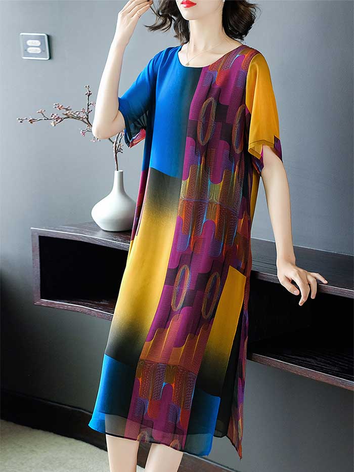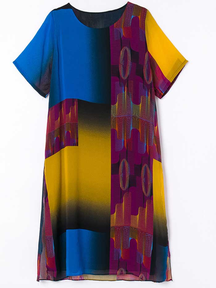 Simple Loosen Solid Cap Sleeve Knee Dress