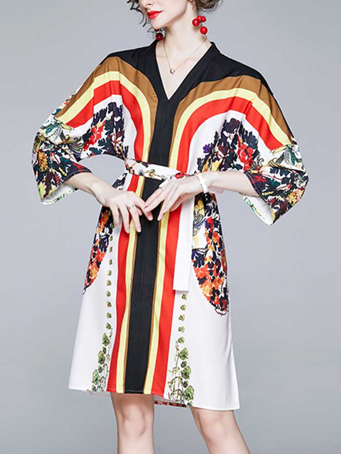 Round Neck Pleated Flare Sleeve Short Party Dress