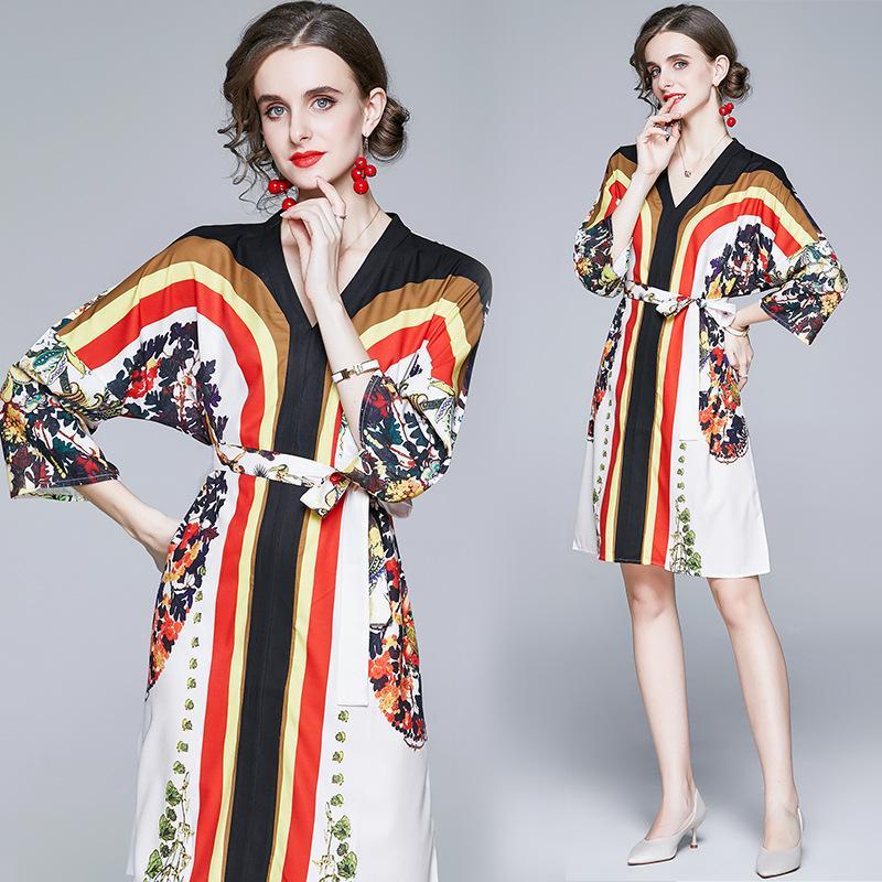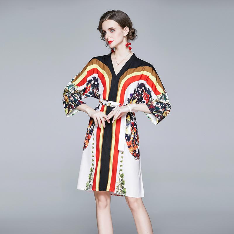 White V-neck Long-sleeved Simple Dress In The Long Section