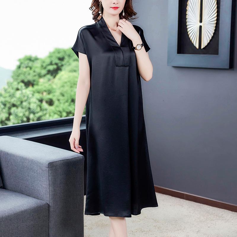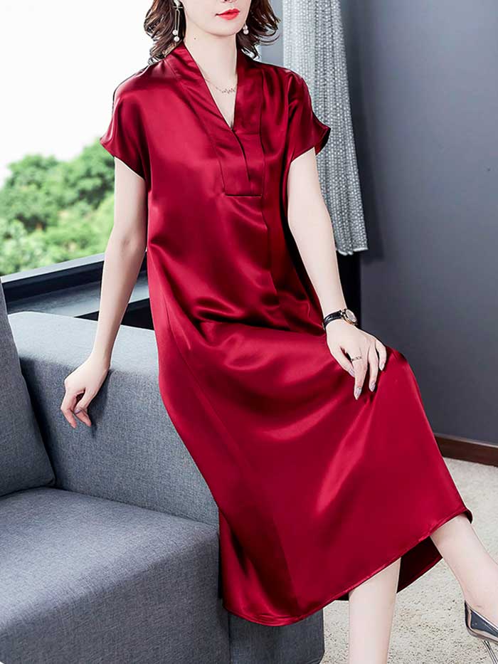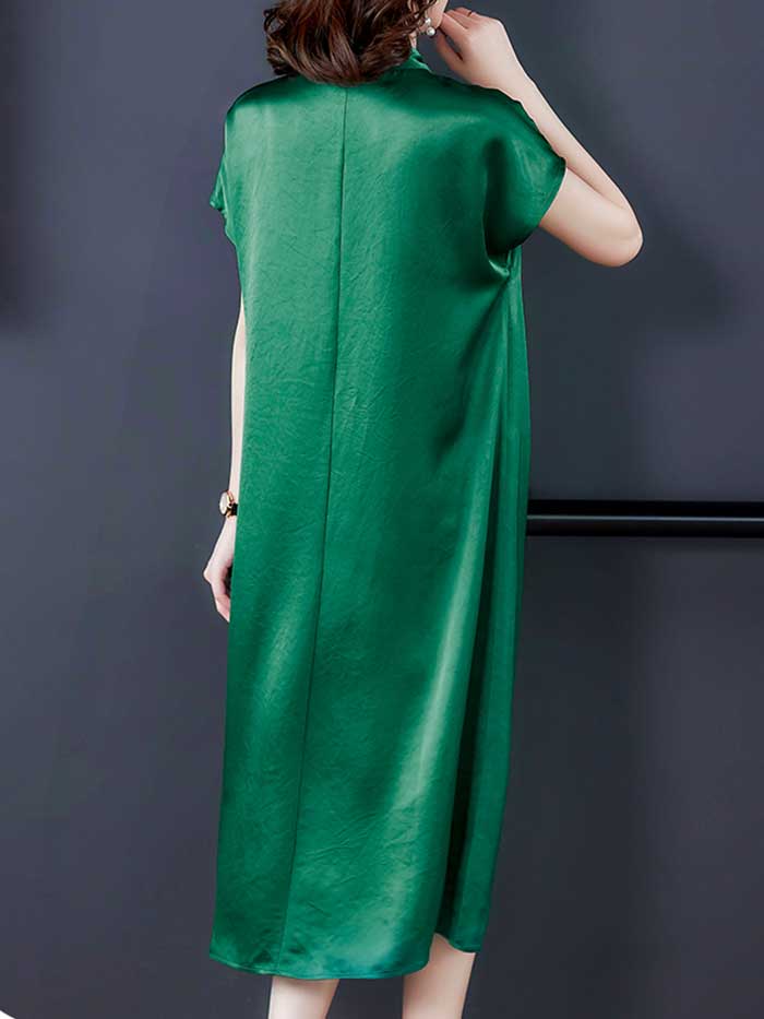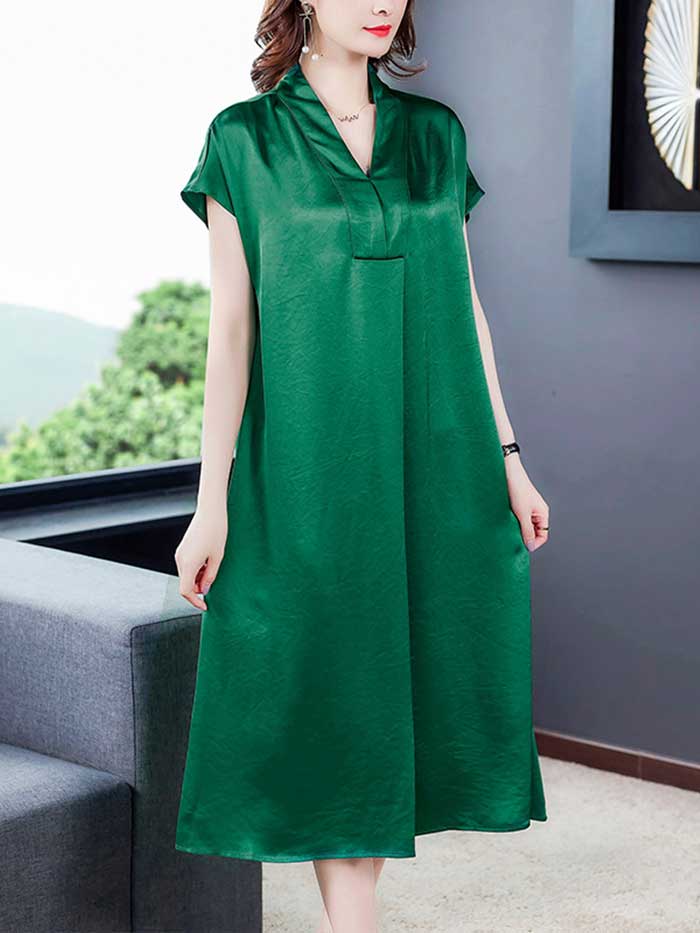 Simple Loosen Solid Cap Sleeve Knee Dress