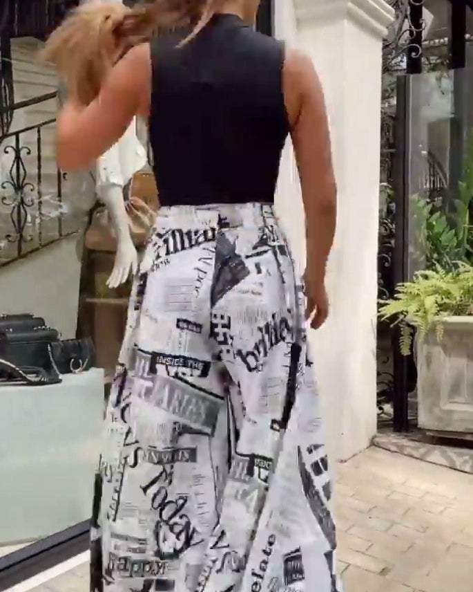 Irregular text print two-piece set