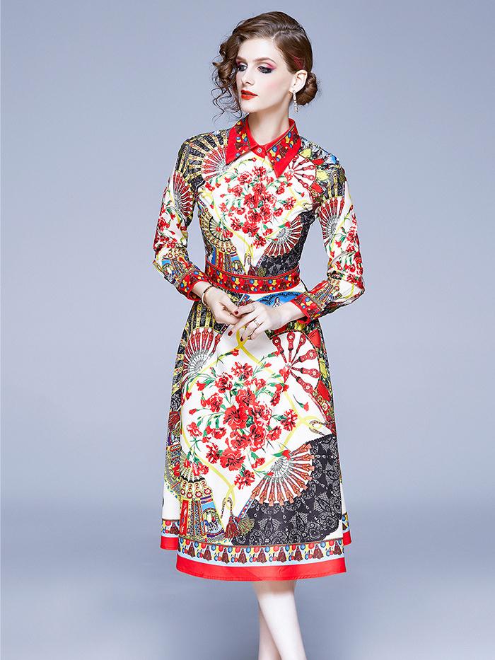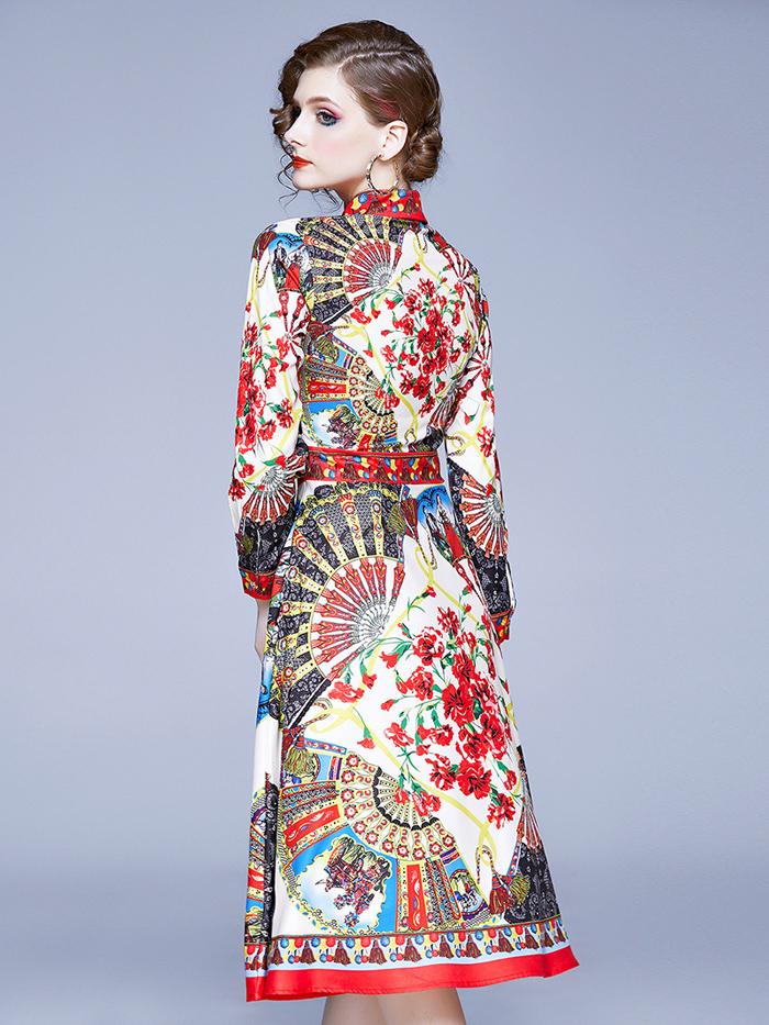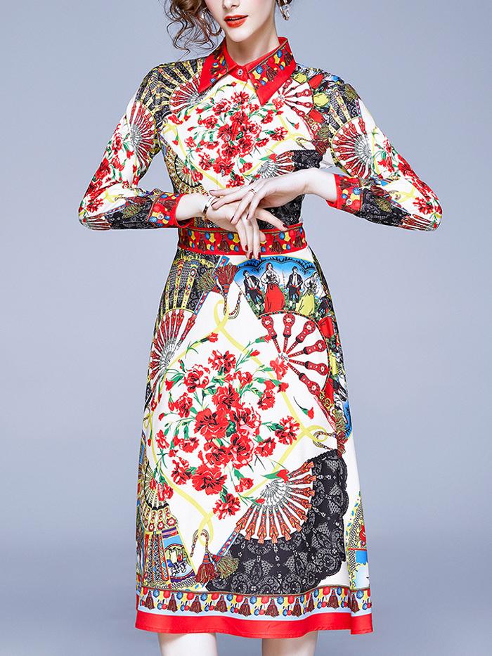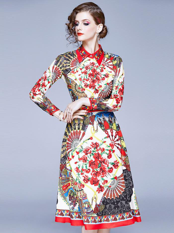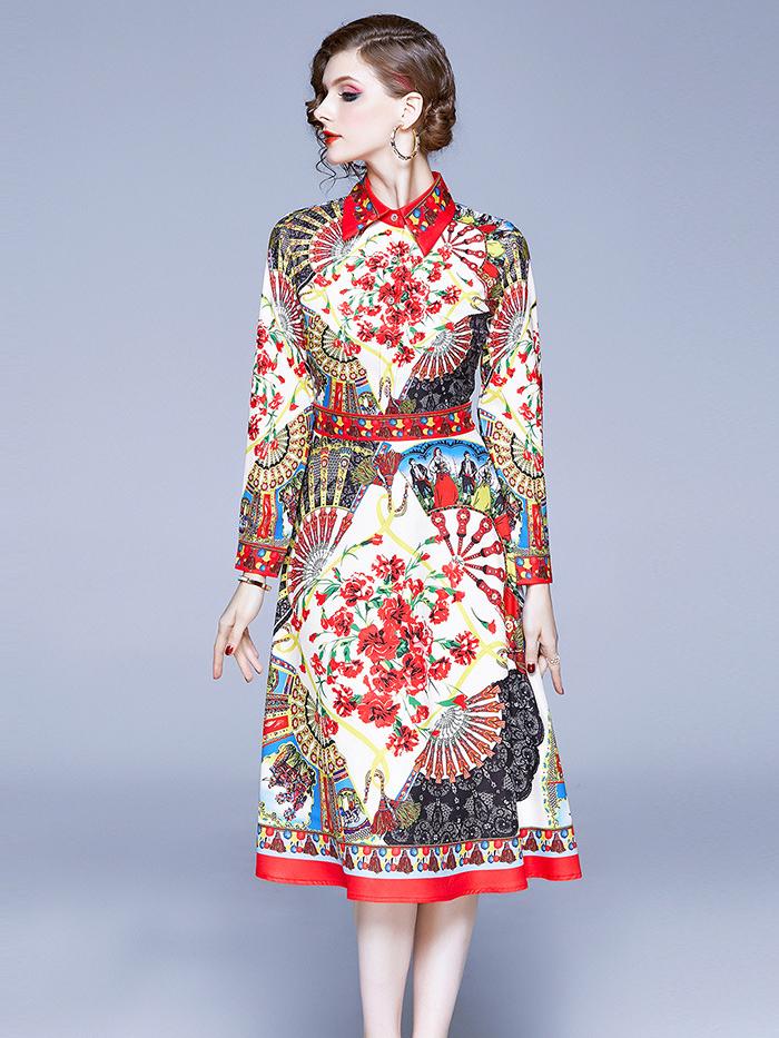 White V-neck Long-sleeved Simple Dress In The Long Section