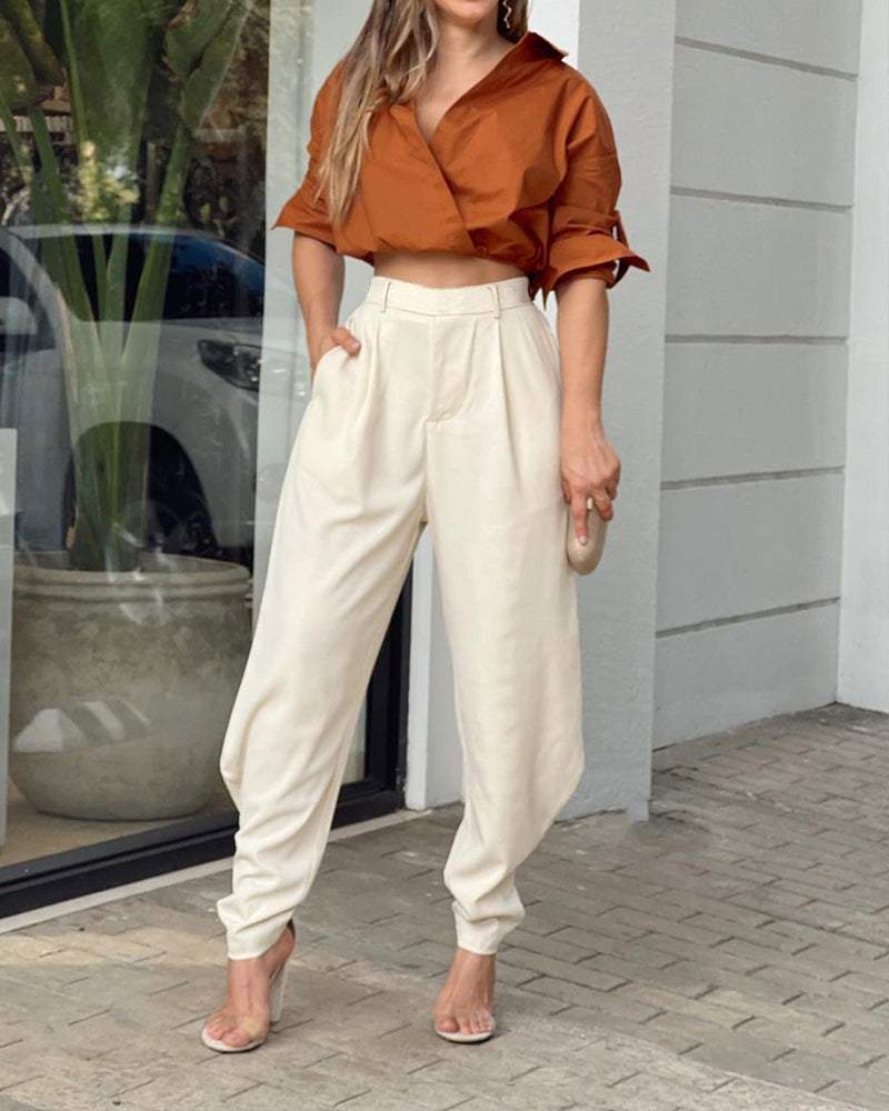 Lapel Top Pants Two Piece Set