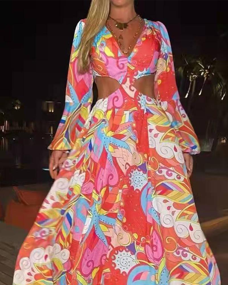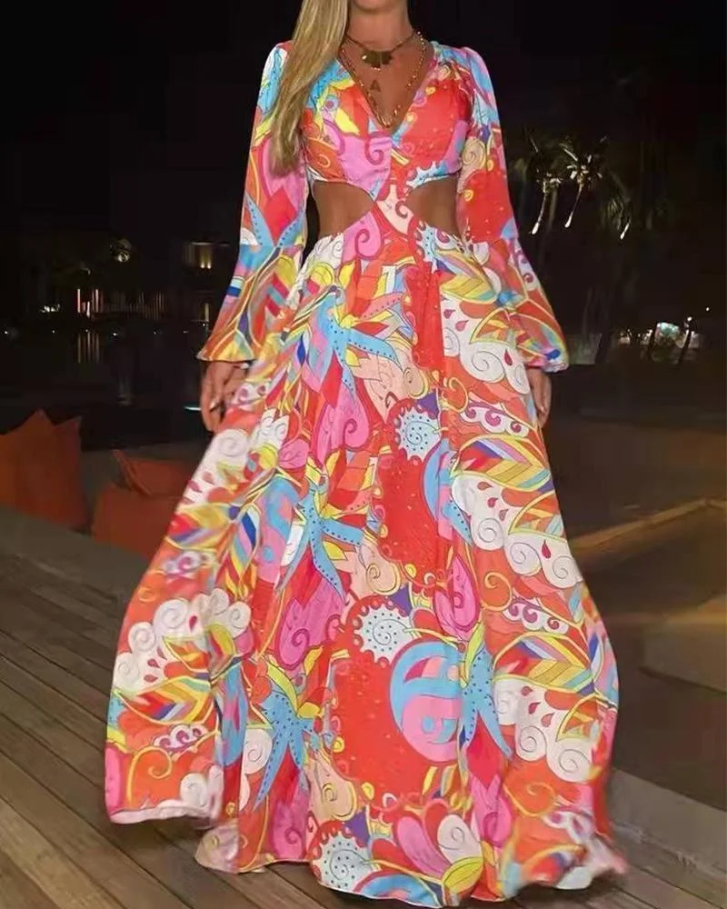 Product Name Leaf Print Long Sleeve Dress