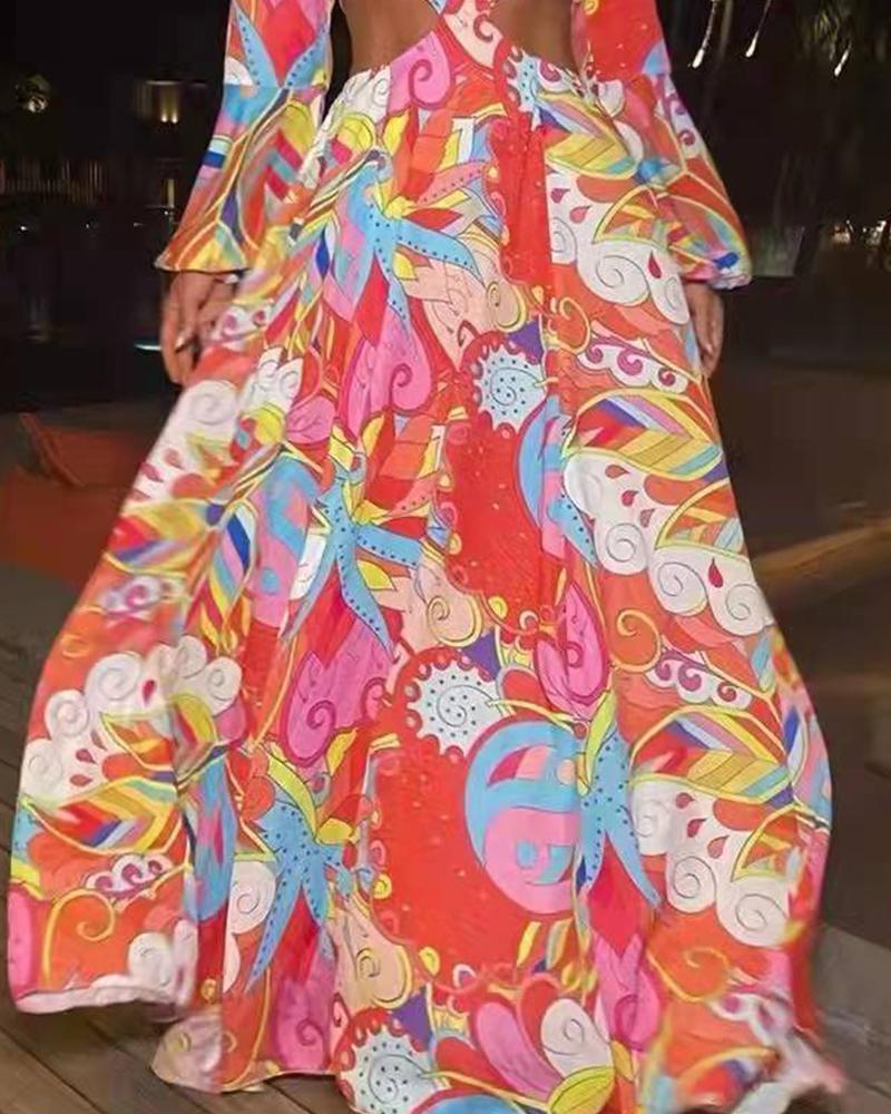 Leaf Print Long Sleeve Dress