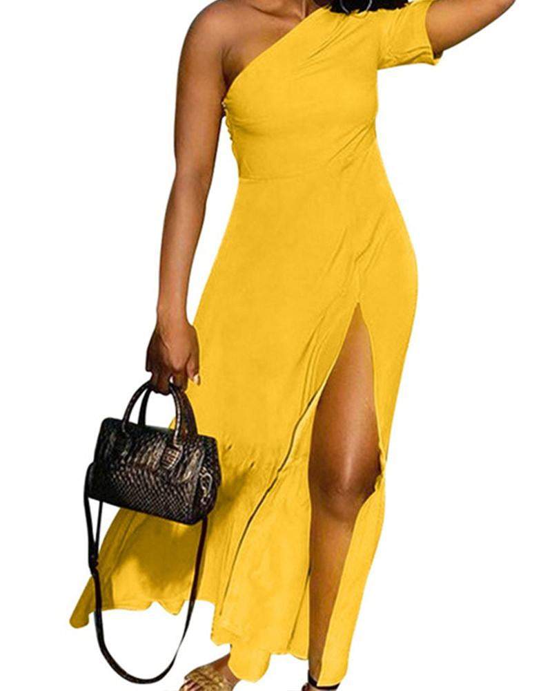 Long Dress With Diagonal Shoulder And Slit
