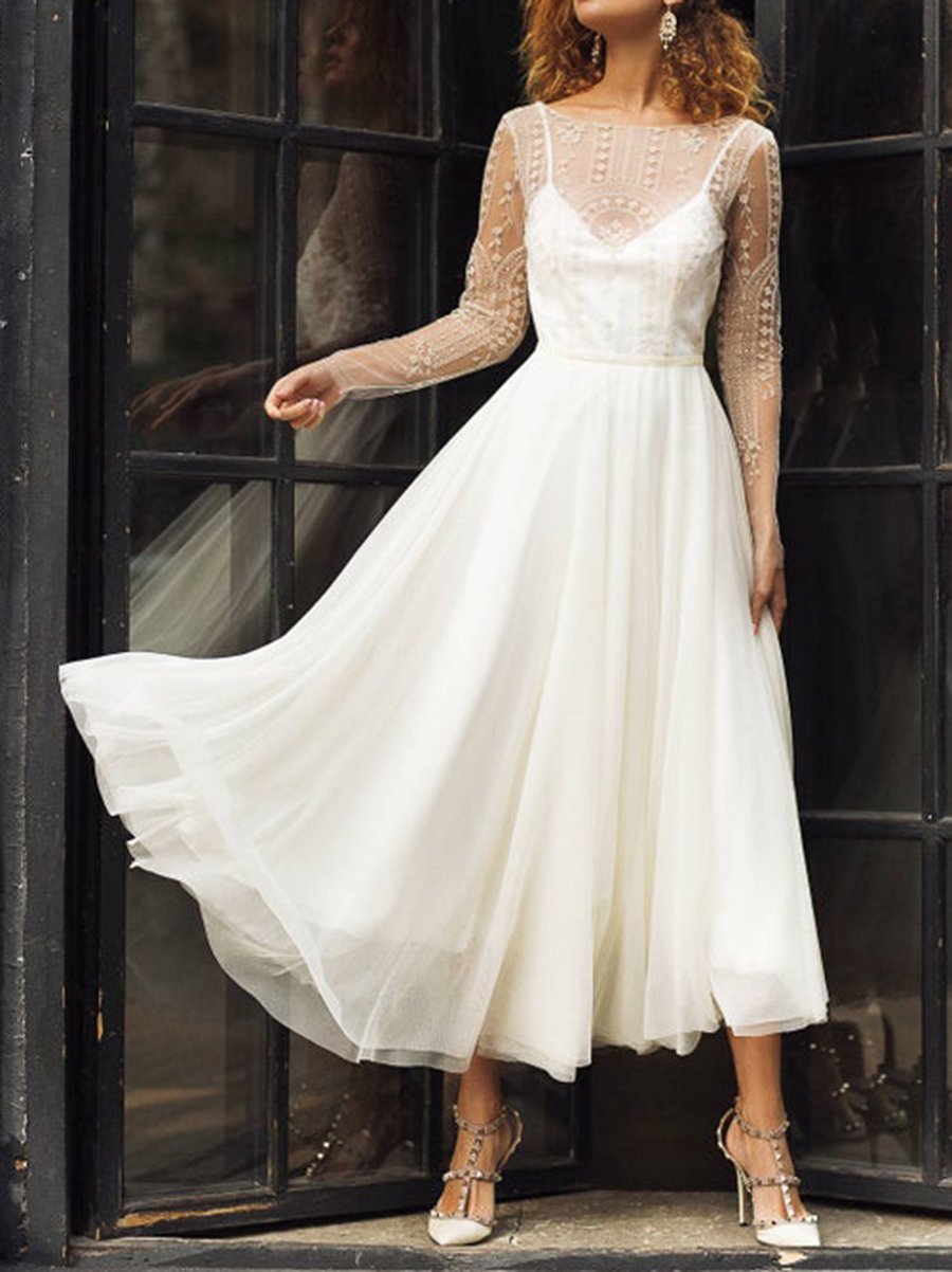 White round neck long sleeve party dress
