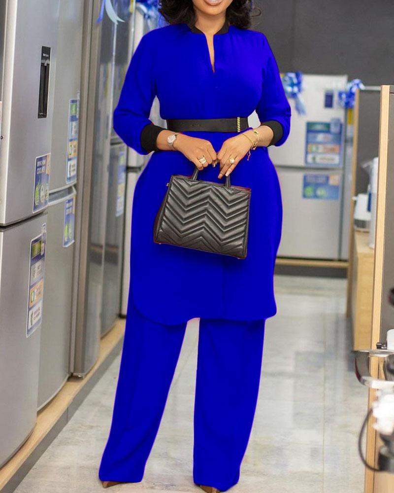 Long Sleeve Top And Wide Leg Pants Two Piece Set