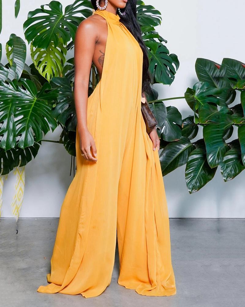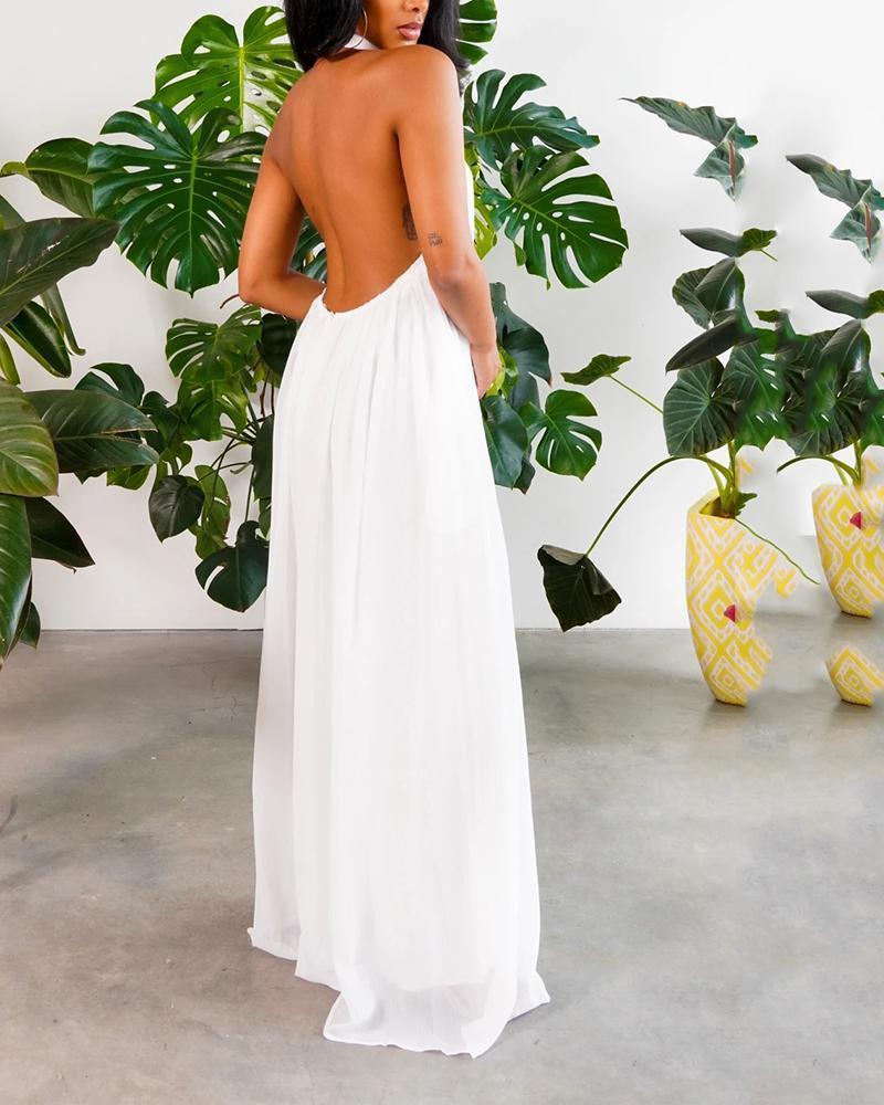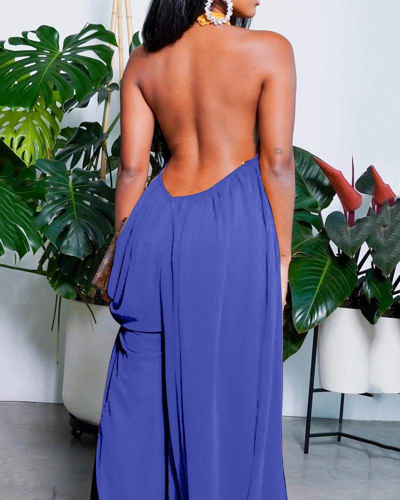 Solid color backless maxi dress