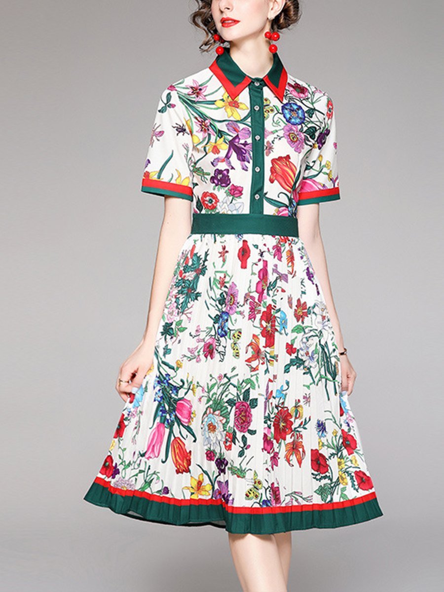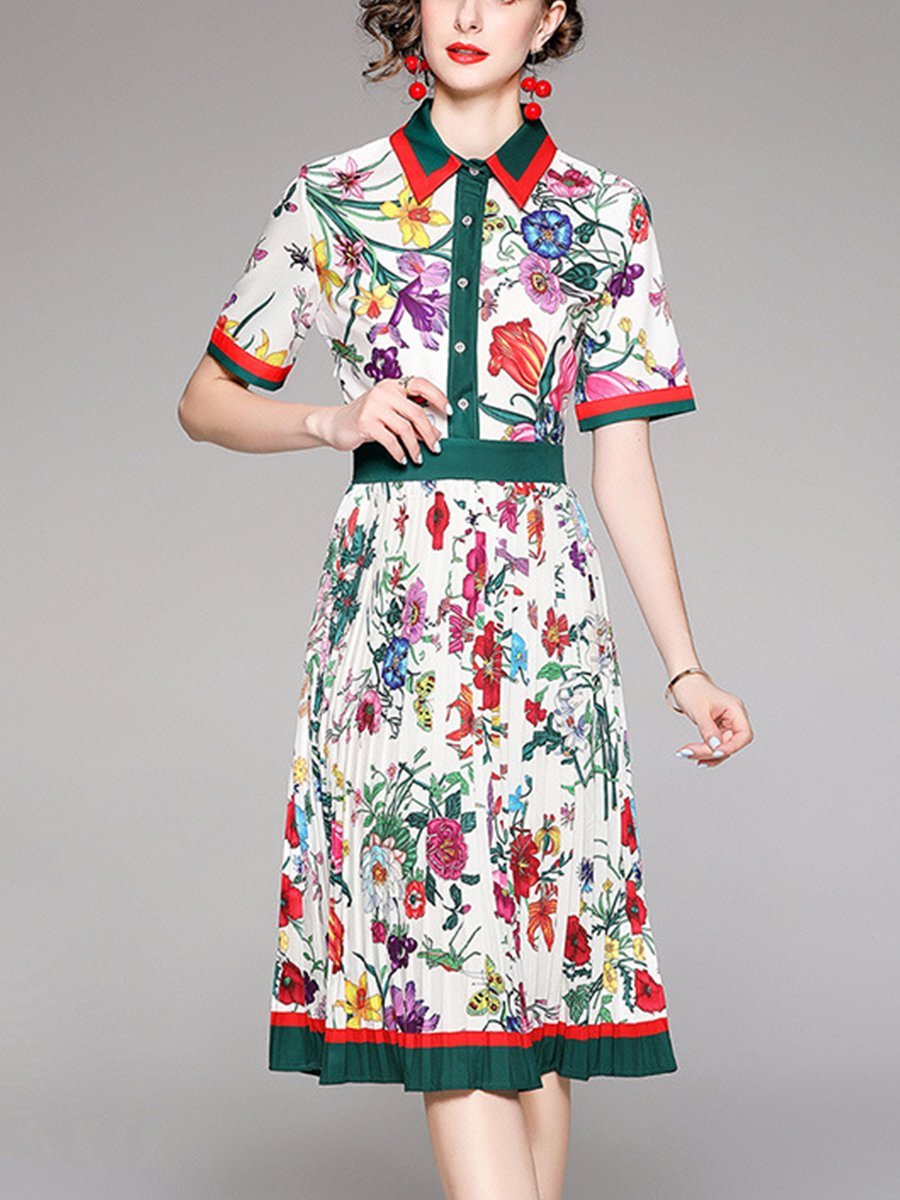 Round Neck Pleated Flare Sleeve Short Party Dress