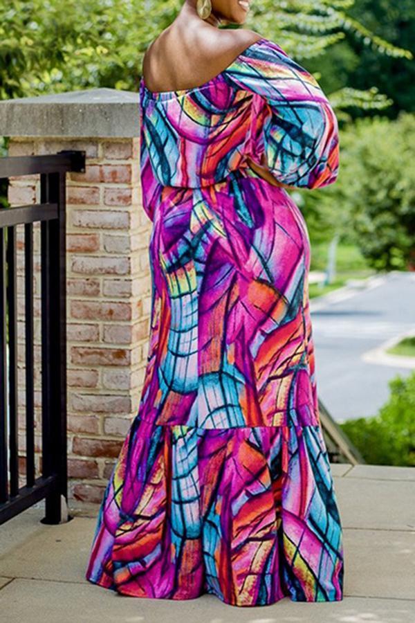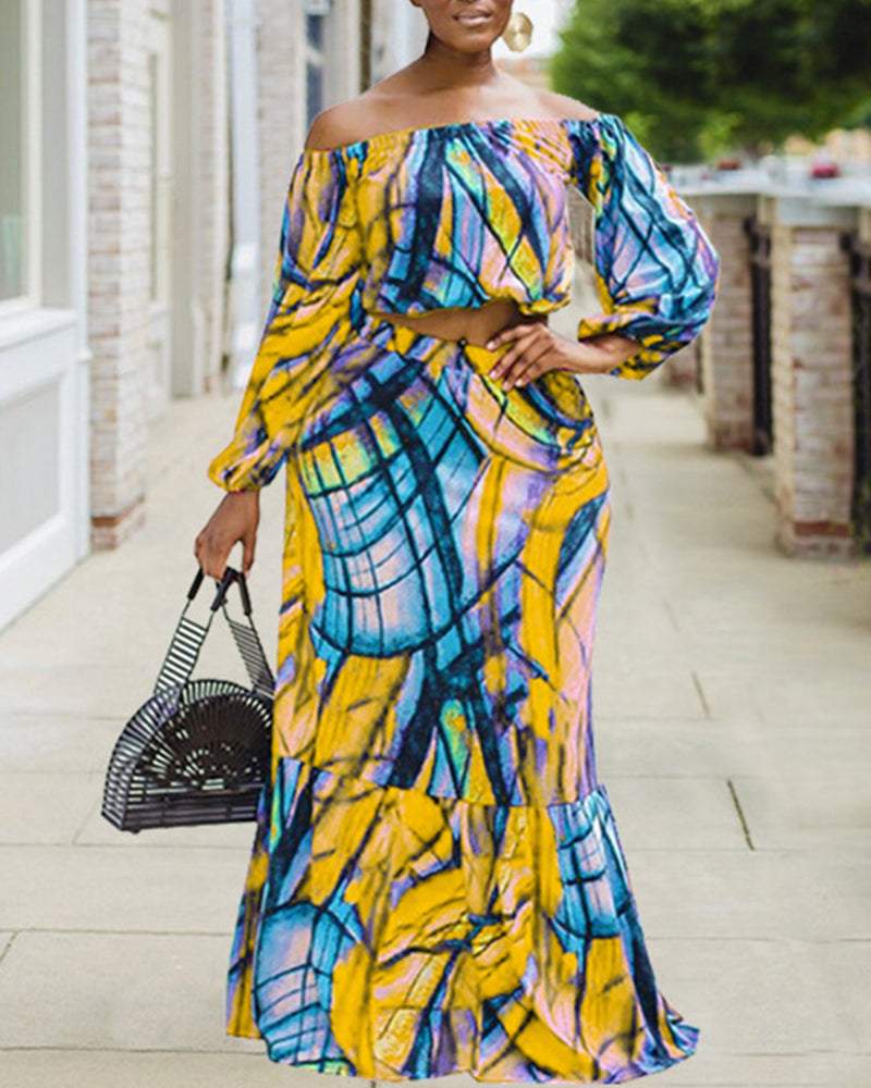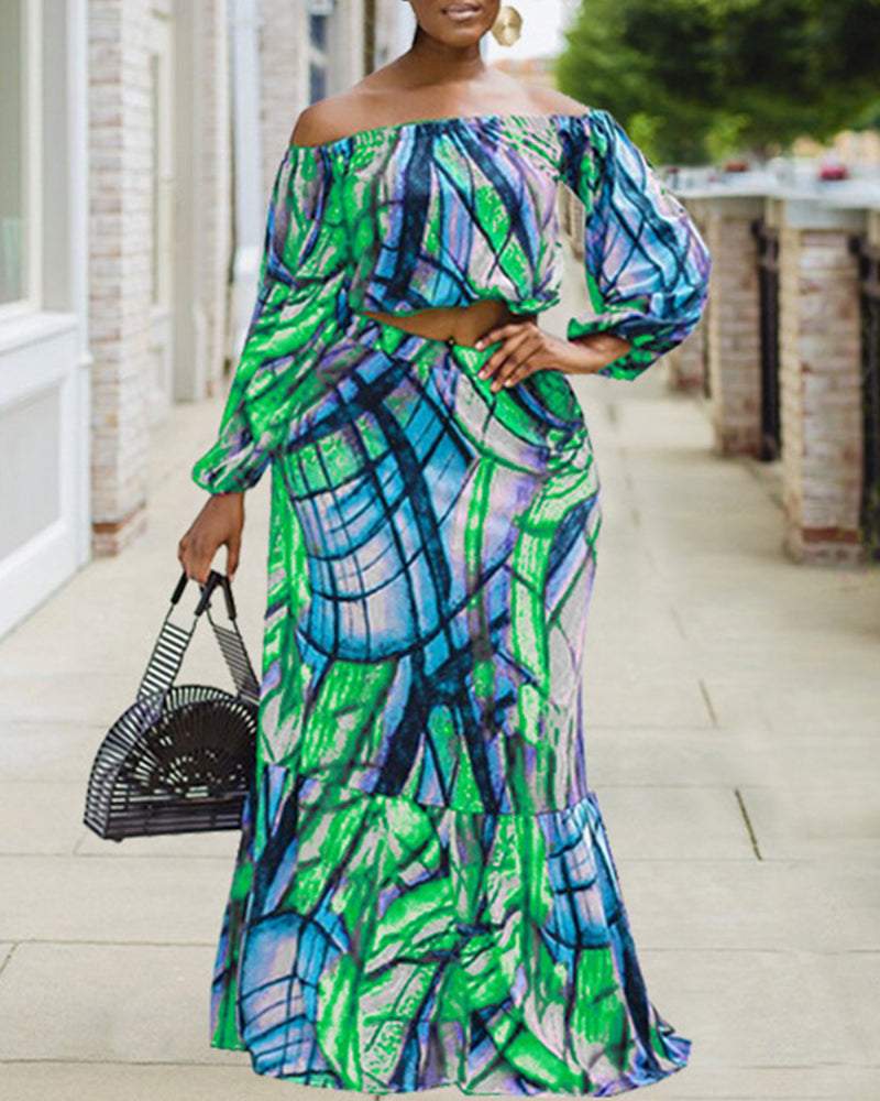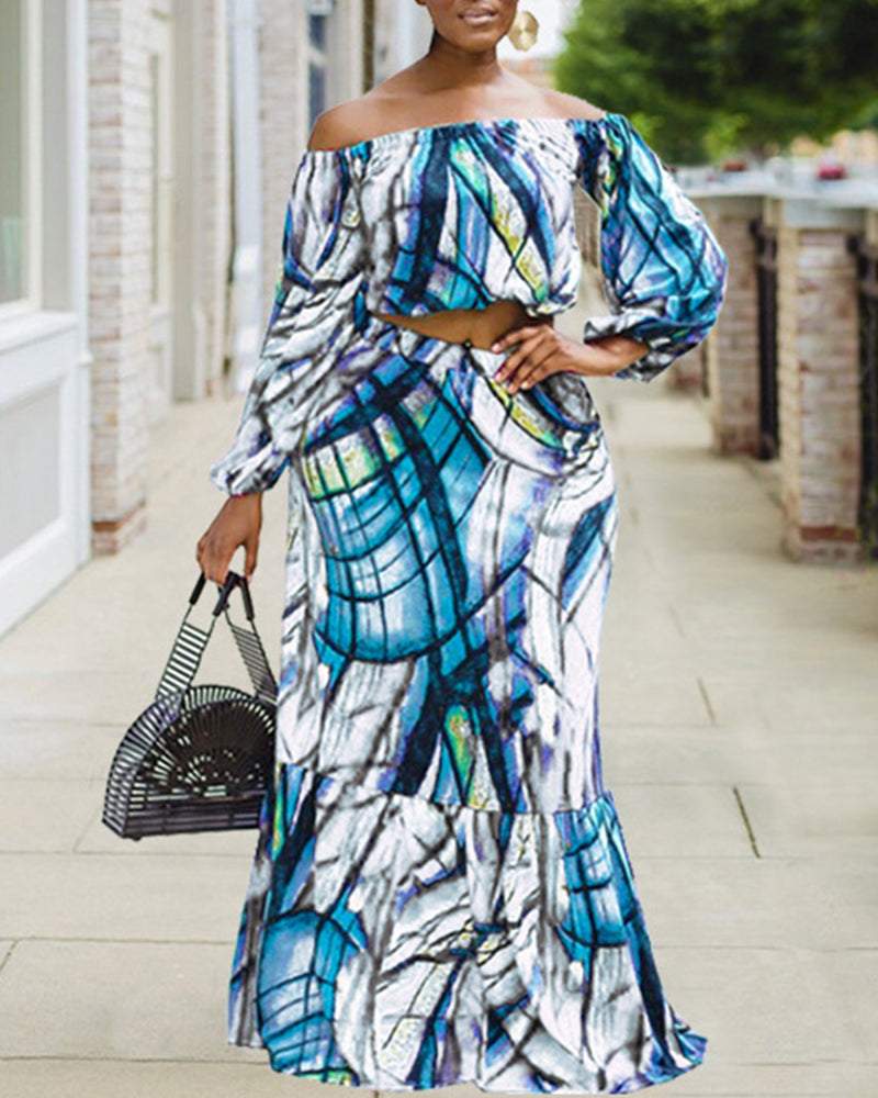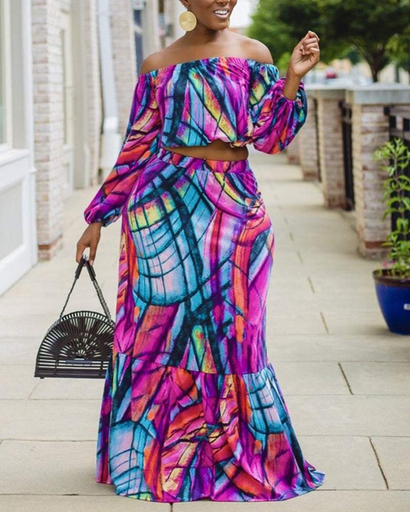 Off-the-shoulder Abstract Contrast Print Skirt Suit