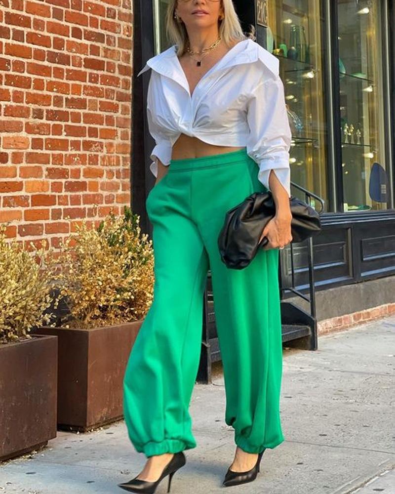Elegant Pleated Long Sleeve Black Two Piece Suit
